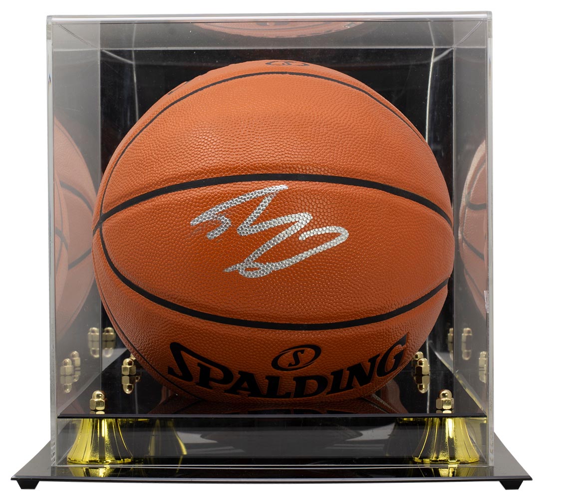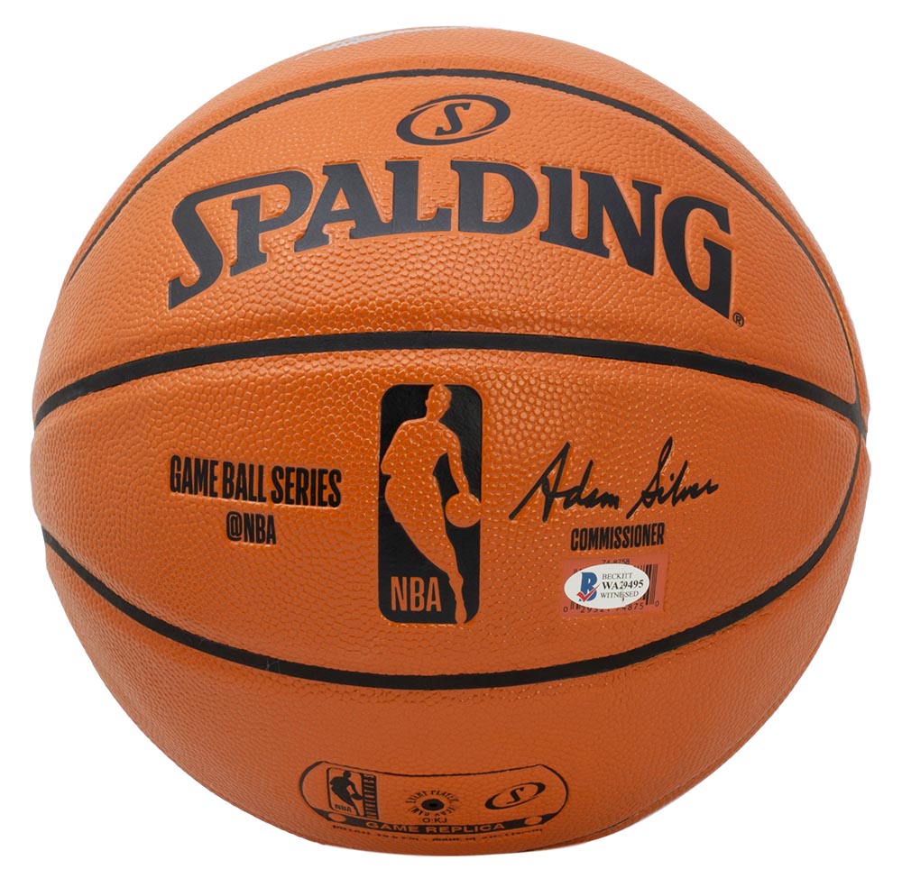 Spalding NBA Game Ball Series Basketball. Hand-signed in silver paint pen by Shaquille O'Neal (Los Angeles Lakers, HOF). Auction includes a high-quality acrylic display case as shown.