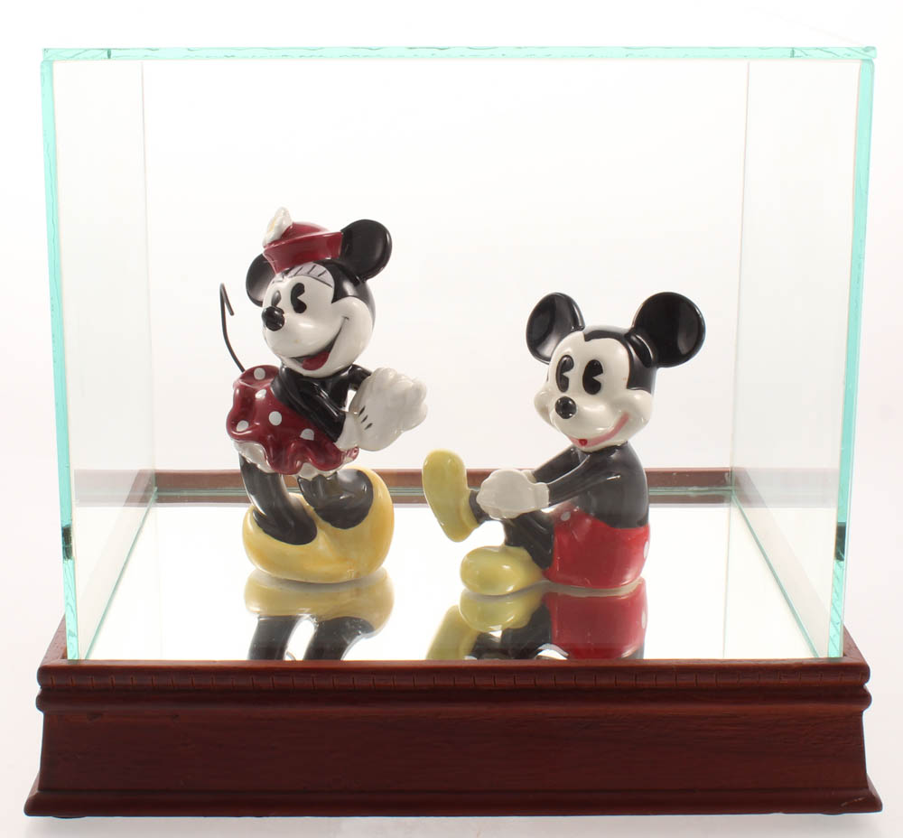 Vintage 1970's Ceramic Mickey & Minnie Mouse Figurines with Display Case