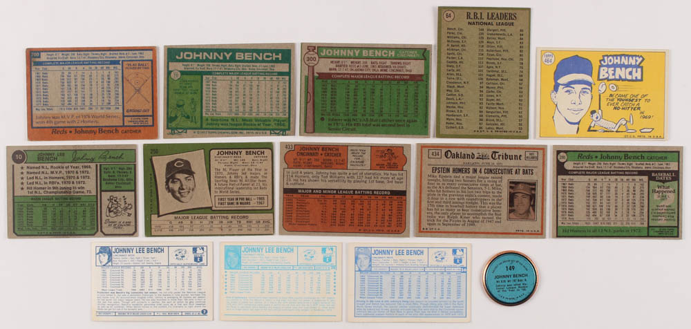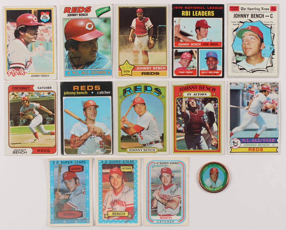Lot of (14) Assorted Johnny Bench Baseball Cards With 1971 Topps Coins #149, 1974 Kellogg's #28, #464 Johnny Bench All-Star, 1978 Topps #700