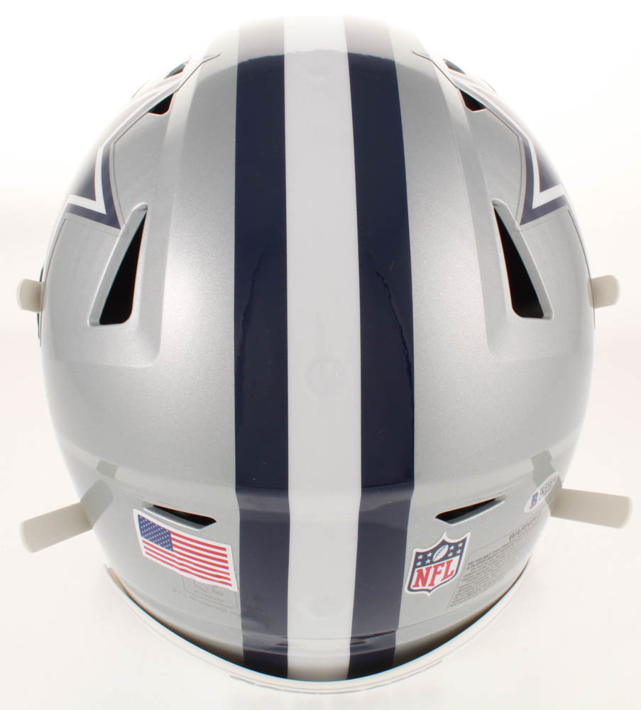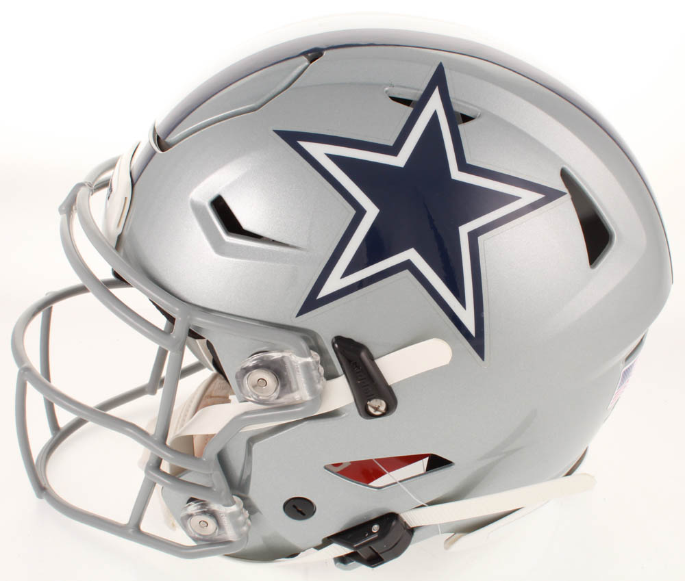 Riddell Dallas Cowboys full-size authentic on-field SpeedFlex helmet. Hand-signed and inscribed in black felt-tip pen by Leighton Vander-Esch.