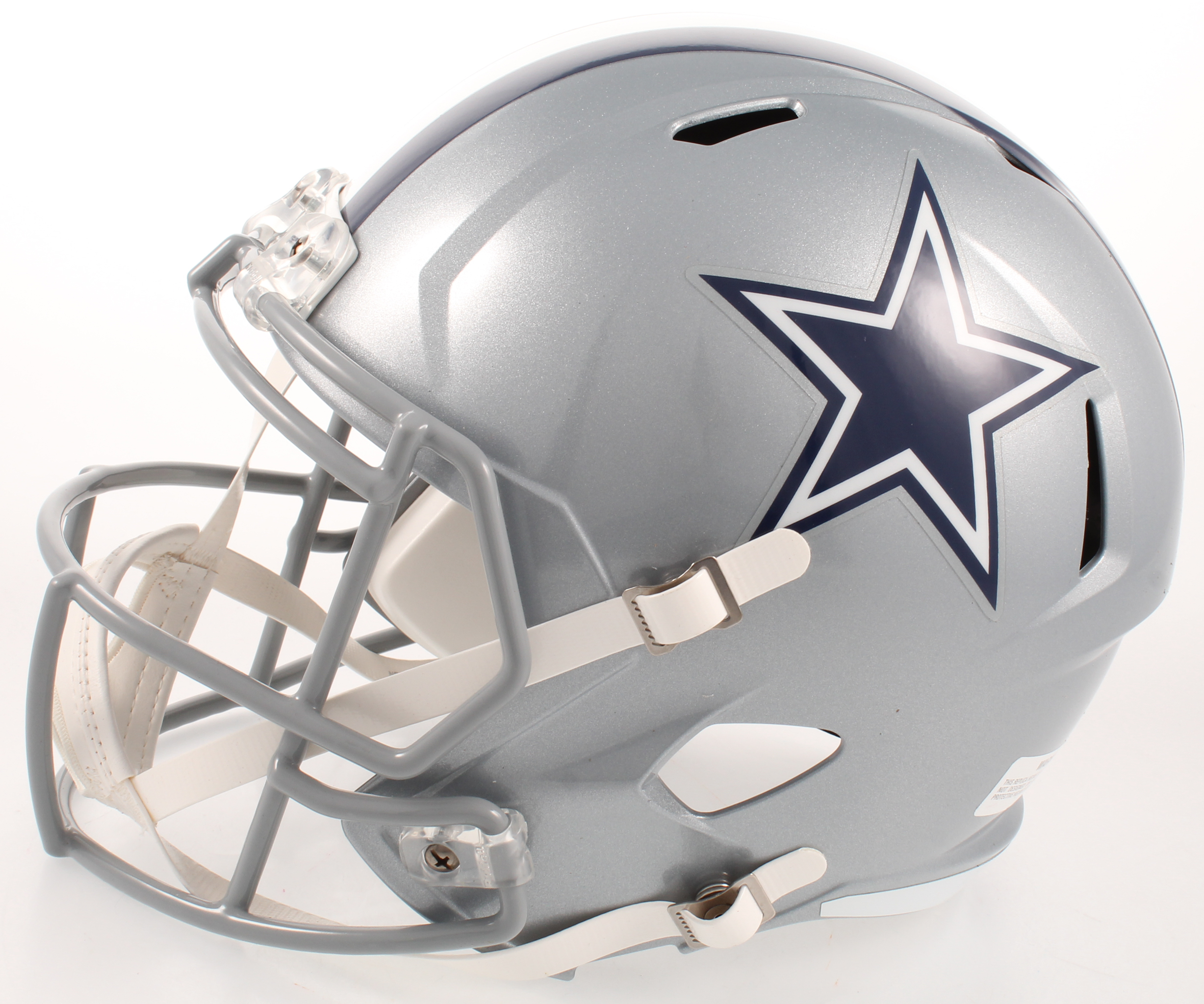 Riddell Dallas Cowboys full-size replica speed helmet has been hand-signed in blue felt-tip pen by Dak Prescott.