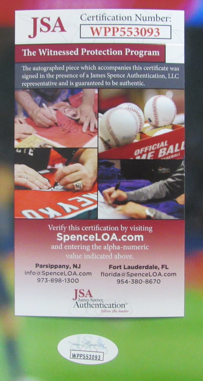The lot / autograph(s) includes an official James Spence Authentication (JSA) hologram and matching COA for authenticity purposes. The signing of this item was witnessed by JSA.