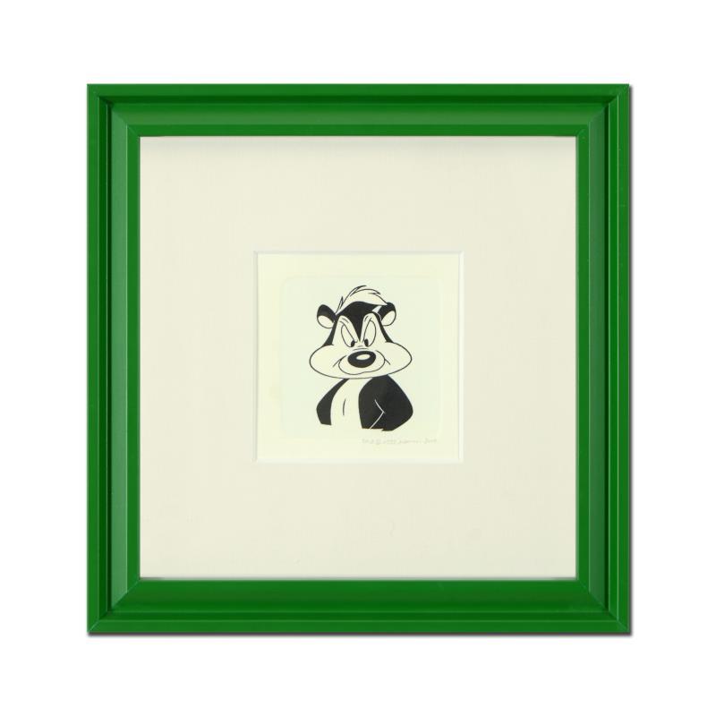 "Pepe Le Pew" is a limited edition etching on paper with hand-tinted coloring from Warner Bros, numbered and dated 1999. This piece comes framed. Measures approx. 9" x 9" (with frame), 2" x 2.5" (image).