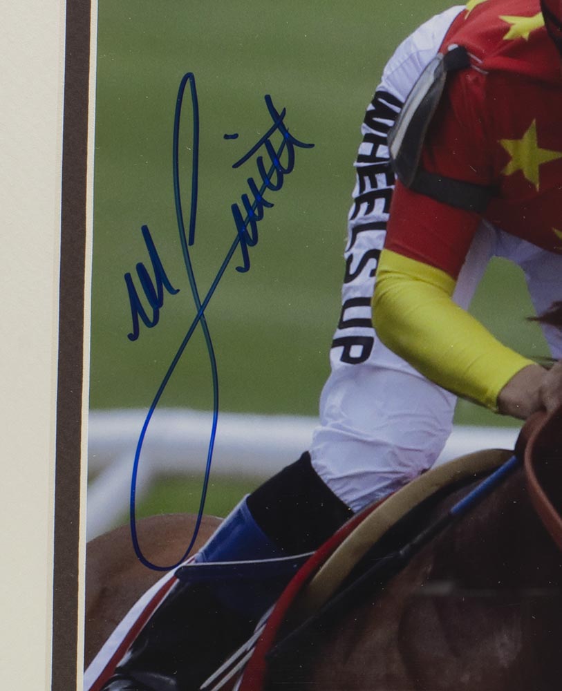Custom framed photo measures 11" x 14" in size and has been hand-signed in blue felt-tip pen by Mike Smith.