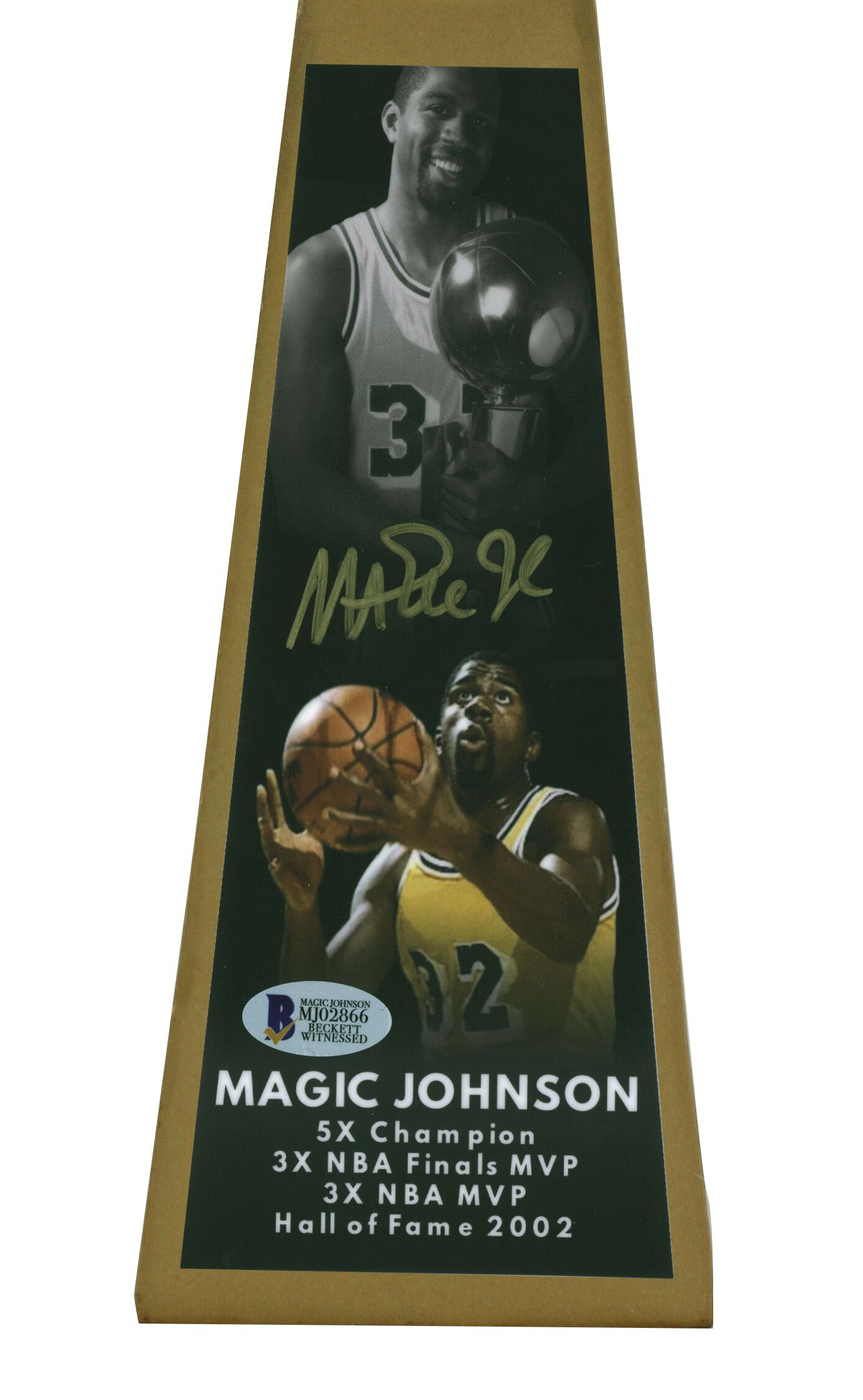 The lot / autograph(s) includes an official Beckett Authentication Services serially numbered Magic Johnson hologram and matching COA for authenticity purposes. The signing of this item was witnessed by Beckett.