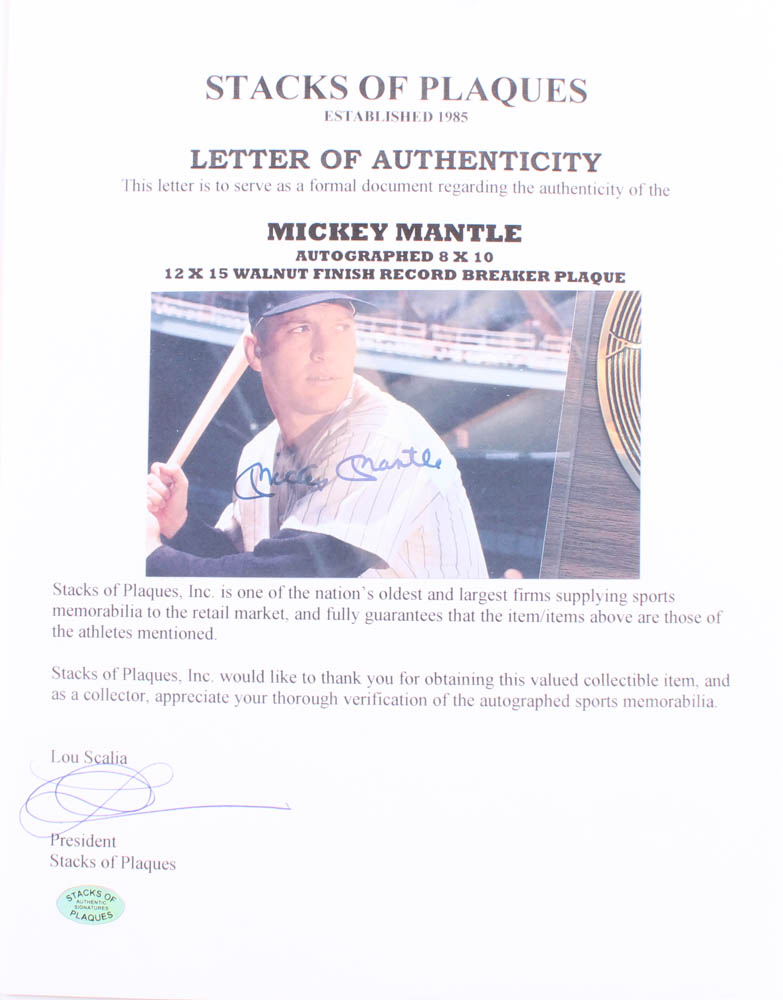 Mickey Mantle Signed Yankees 12x15 Custom Photo Plaque Display (SOP LOA)