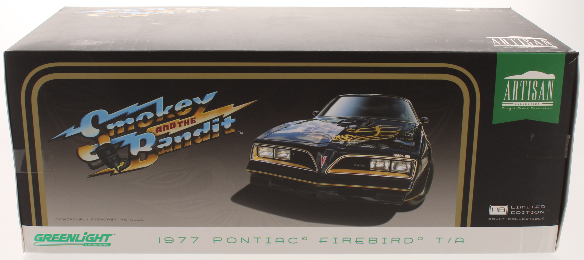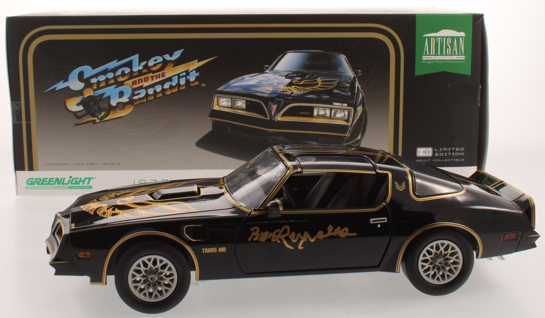 Artisan Collection 1977 Pontiac Firebird 1:18 scale model diecast car has been hand-signed in gold paint pen by Burt Reynolds (D. 2019, Bo Darville "Bandit"). Comes with original packaging. Please see images for details regarding the condition of the car and original packaging.