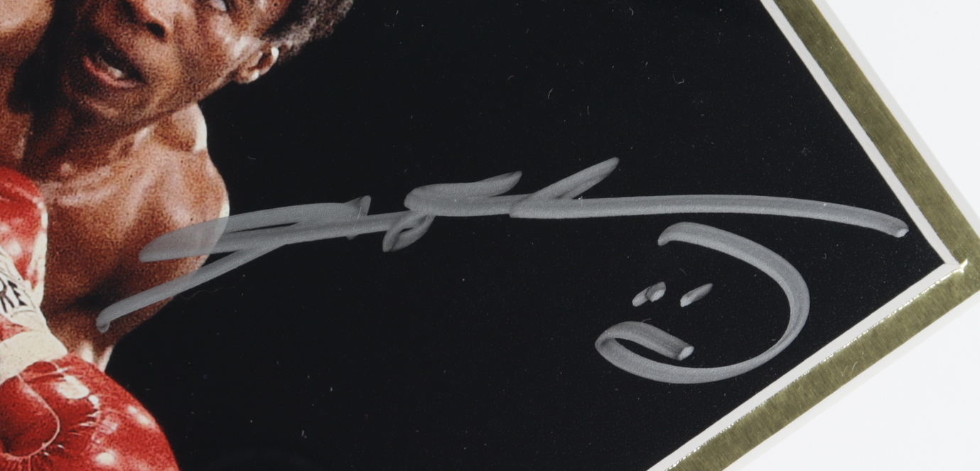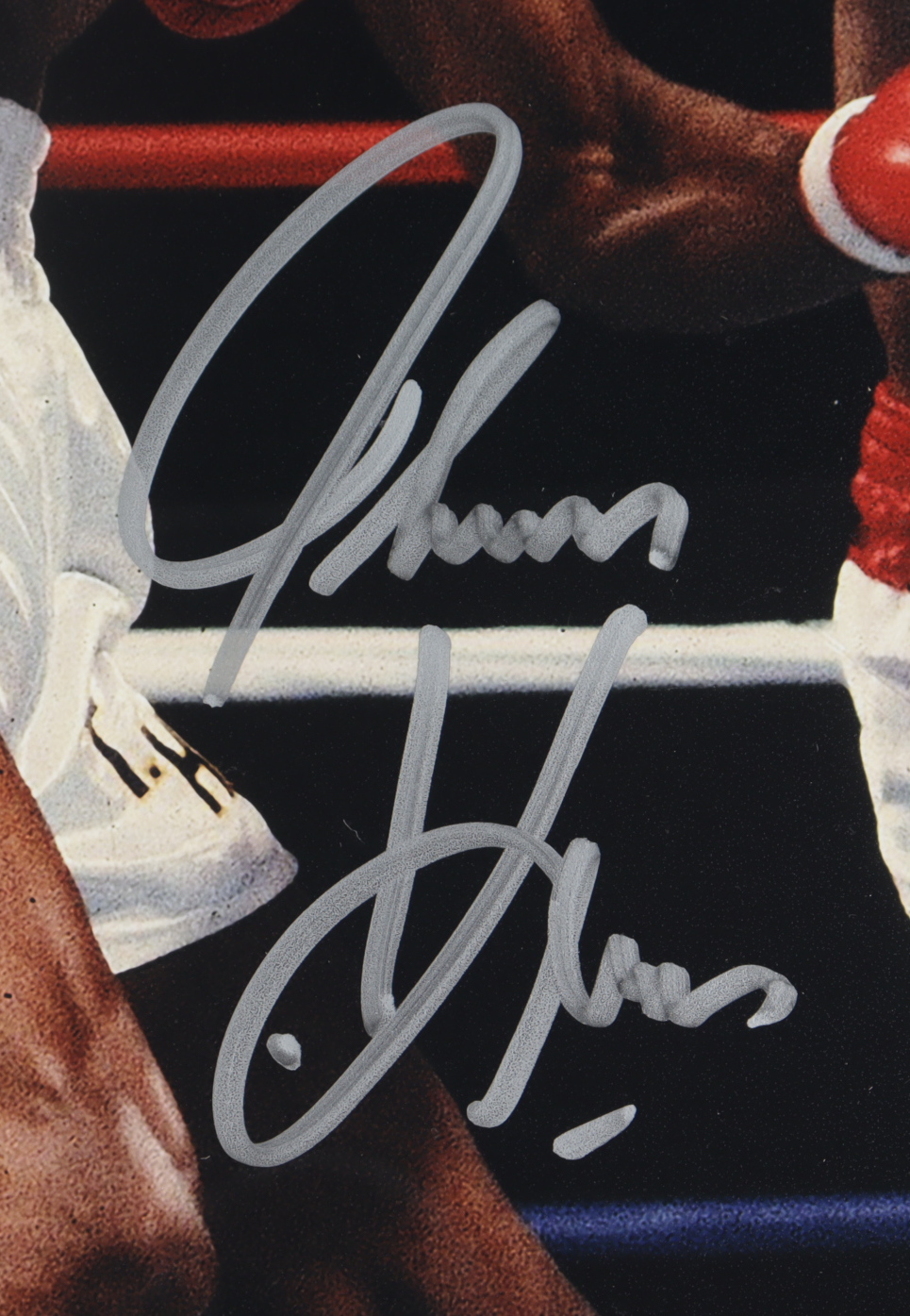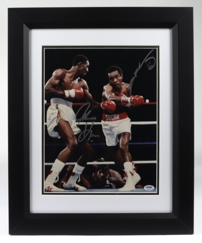 Custom Frame measures 17.5” x 21.5” in size and has been hand-signed by Thomas Hearns (HOF) and Sugar Ray Leonard (HOF).