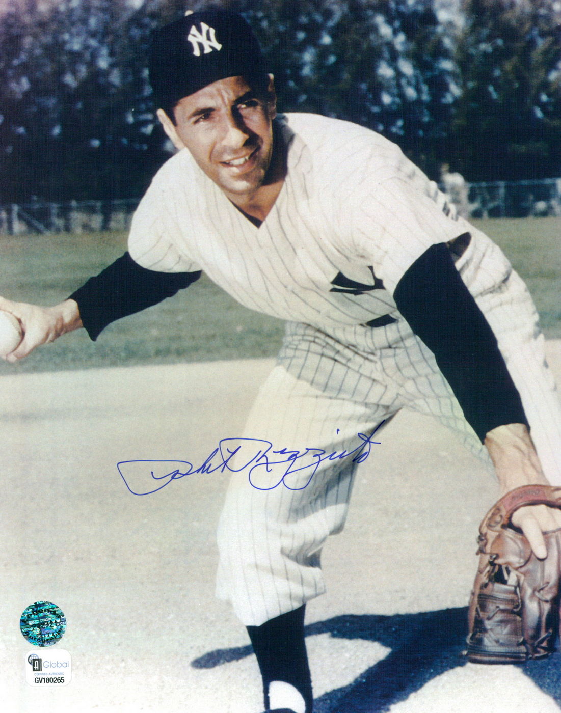 Photo measures 8" x 10" in size and has been hand-signed in blue felt-tip pen by Phil Rizzuto (D. 2007, Yankees HOF). The autograph includes an Legends Autograph hologram and matching COA for authenticity purposes.