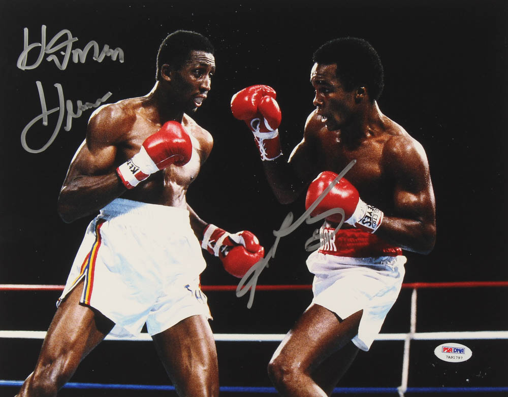 Thomas "Hitman" Hearns & Sugar Ray Leonard Signed 11x14 Photo (PSA COA)