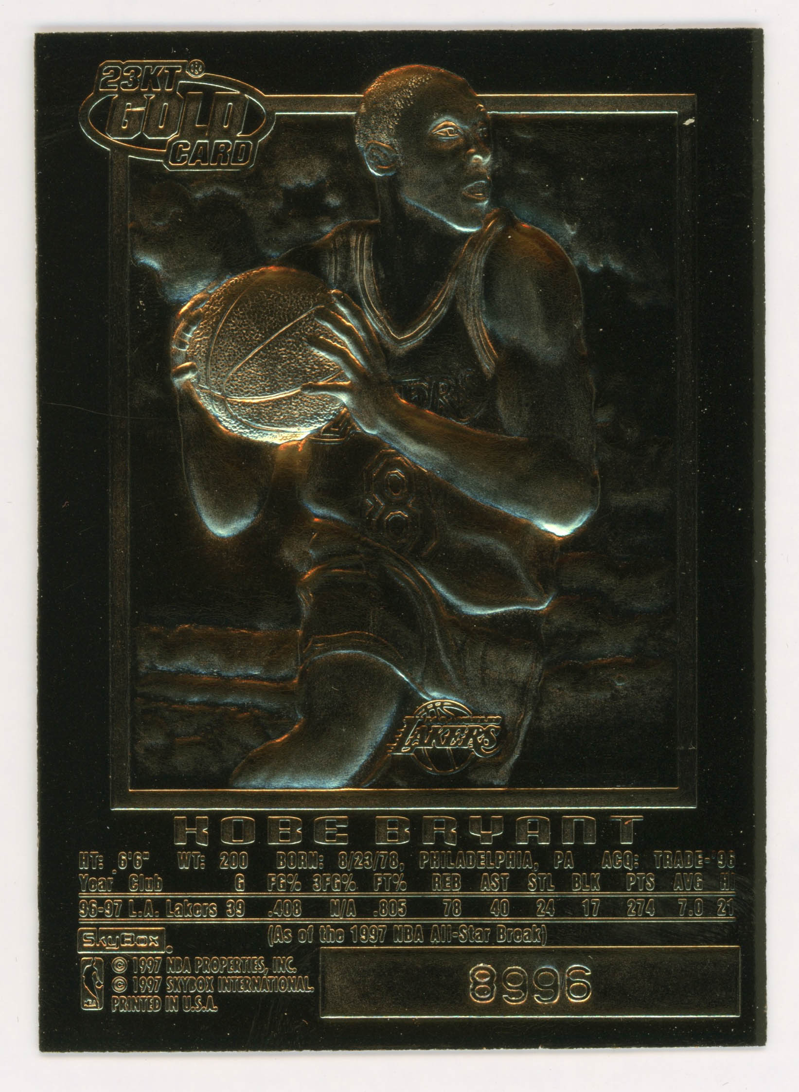 Kobe Bryant 1996 Fleer EX-2000 23KT Gold Card / Purple