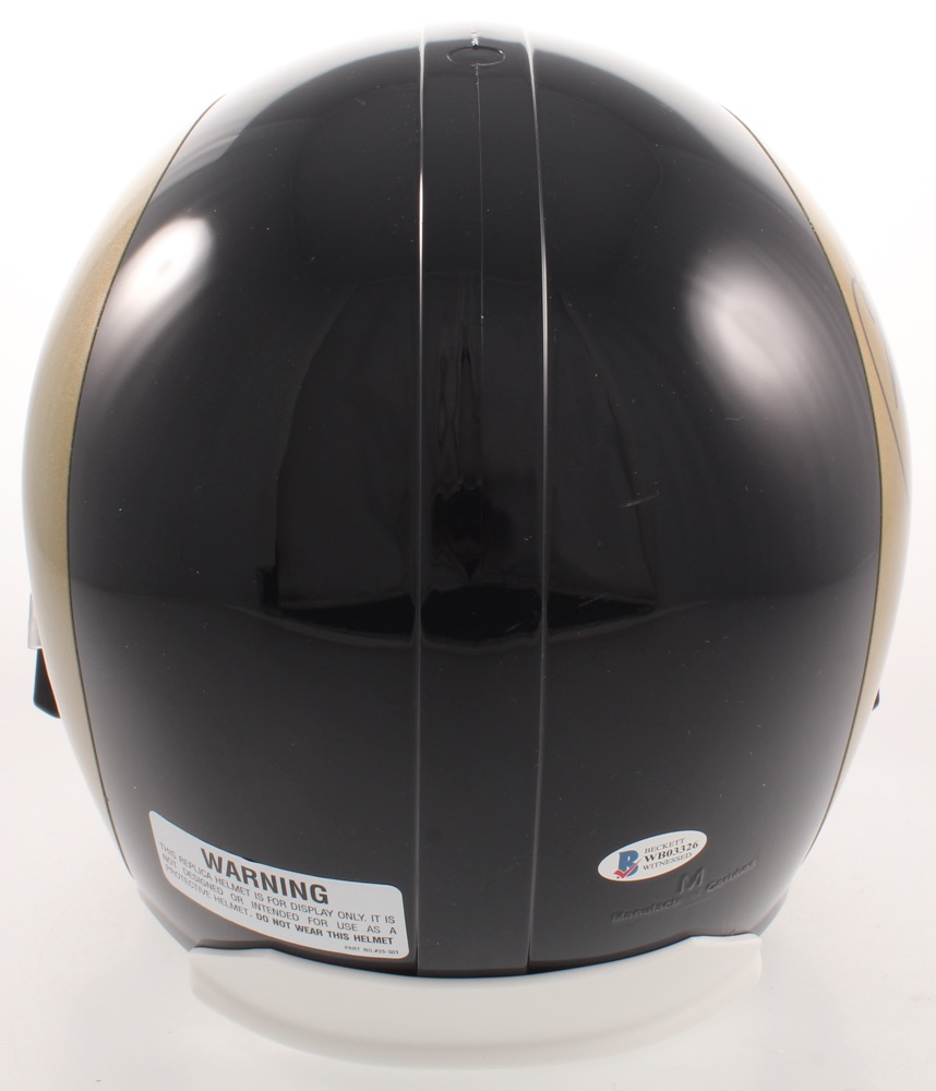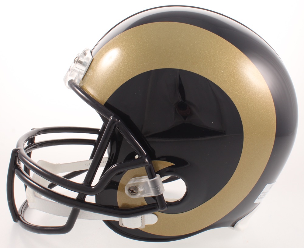 Riddell St. Louis Rams full-size replica helmet. Has been hand-signed and inscribed in black felt-tip pen by Isaac Bruce (HOF).