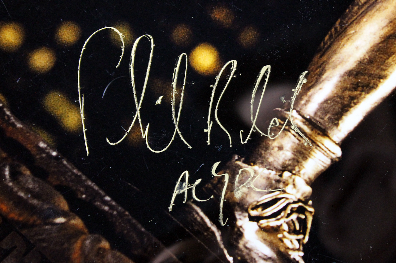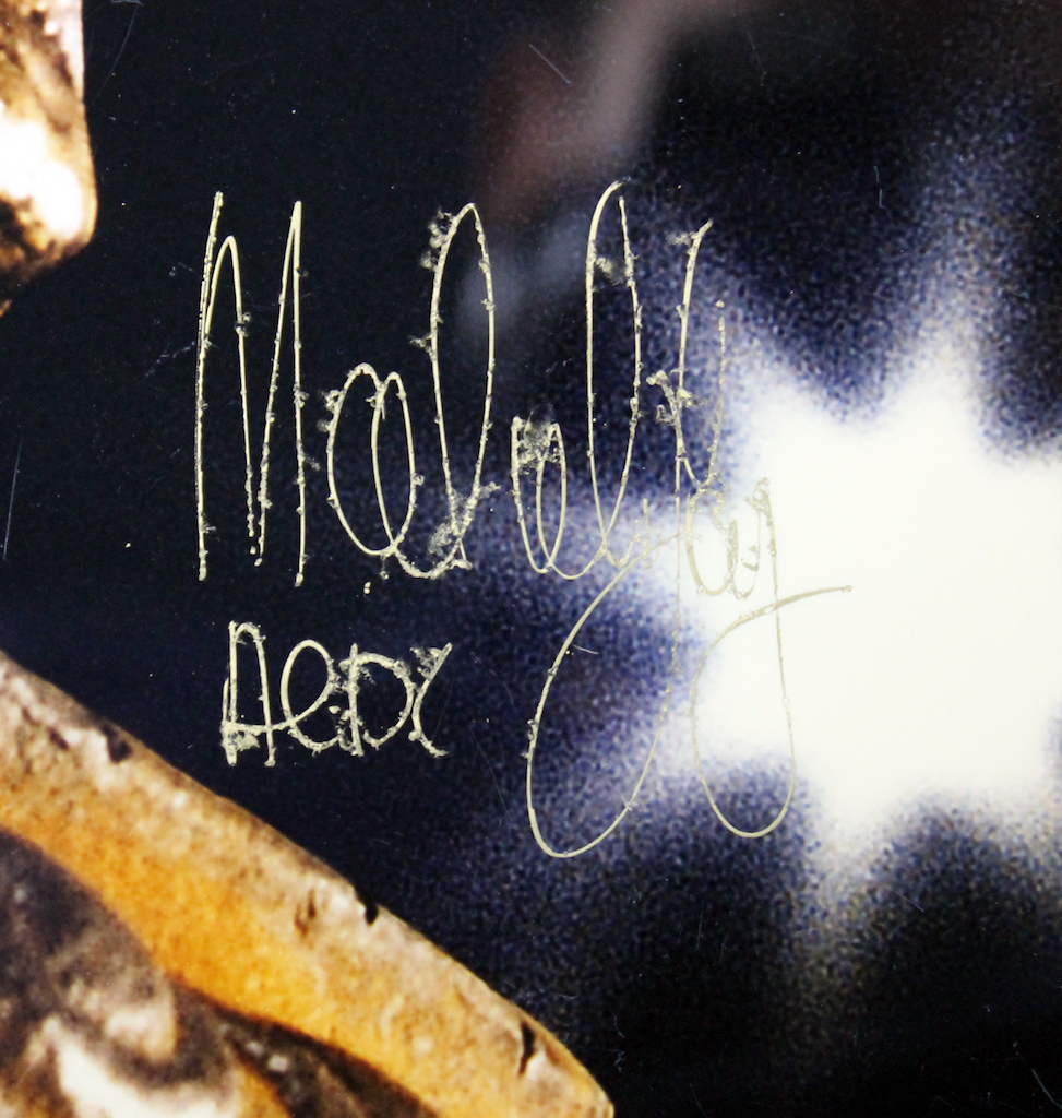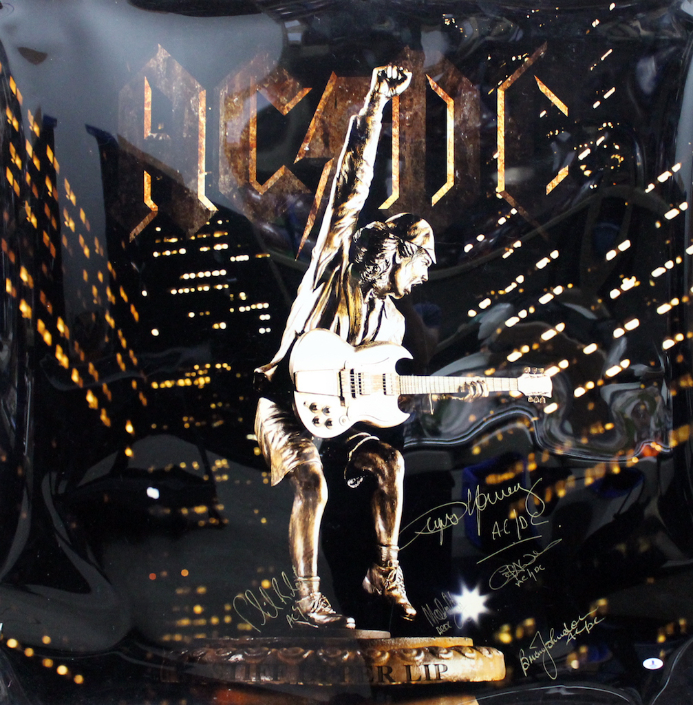Poster measures 30" x 40" in size and has been hand-signed in gold paint pen by Brian Johnson, Malcolm Young, Angus Young, Cliff Williams and Phil Rudd.
