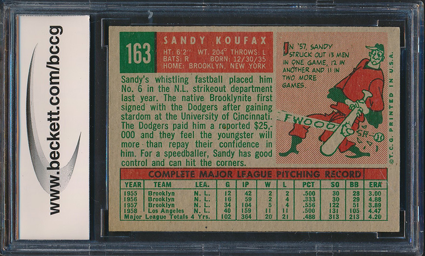 Sandy Koufax 1959 Topps #163 (BCCG 8)
