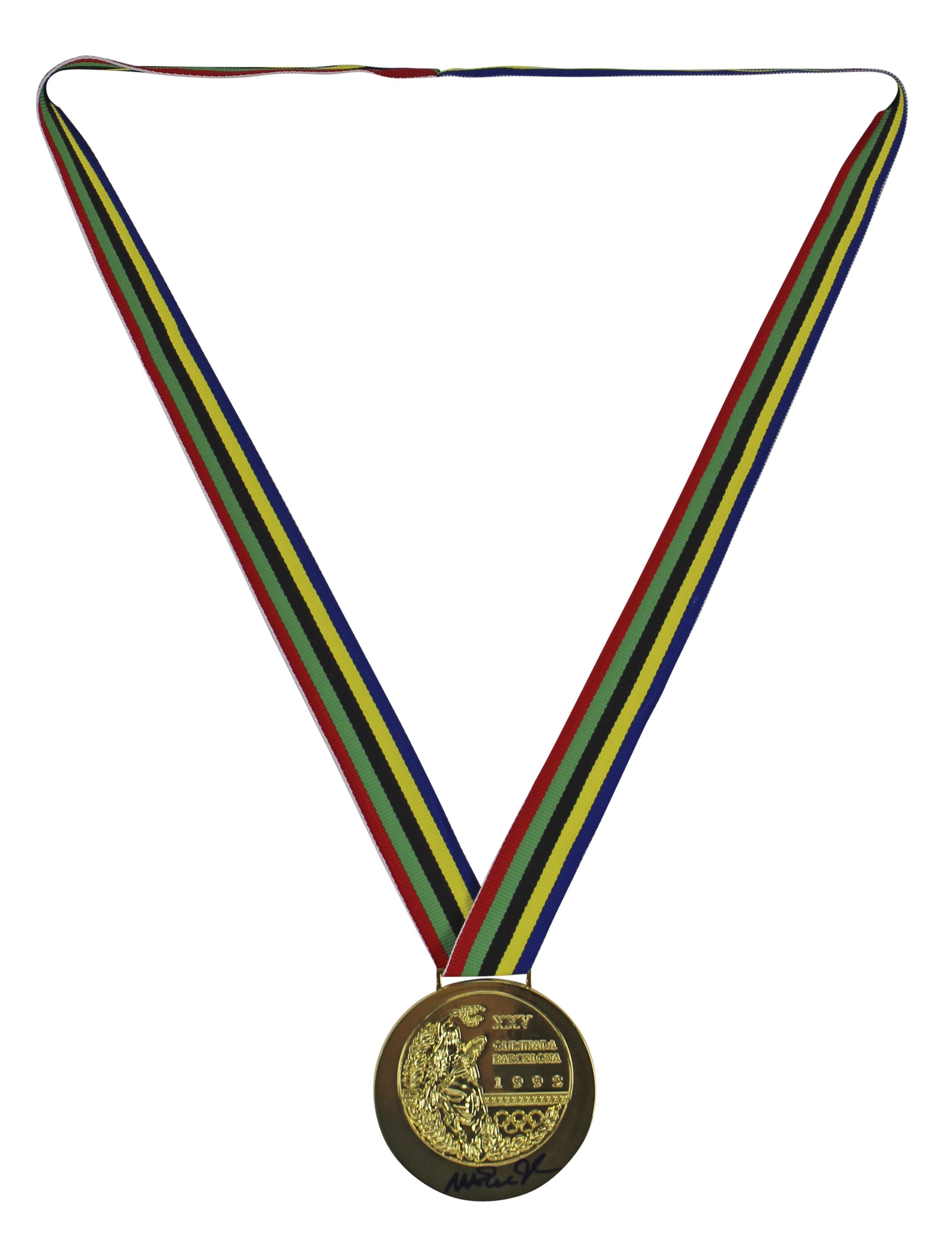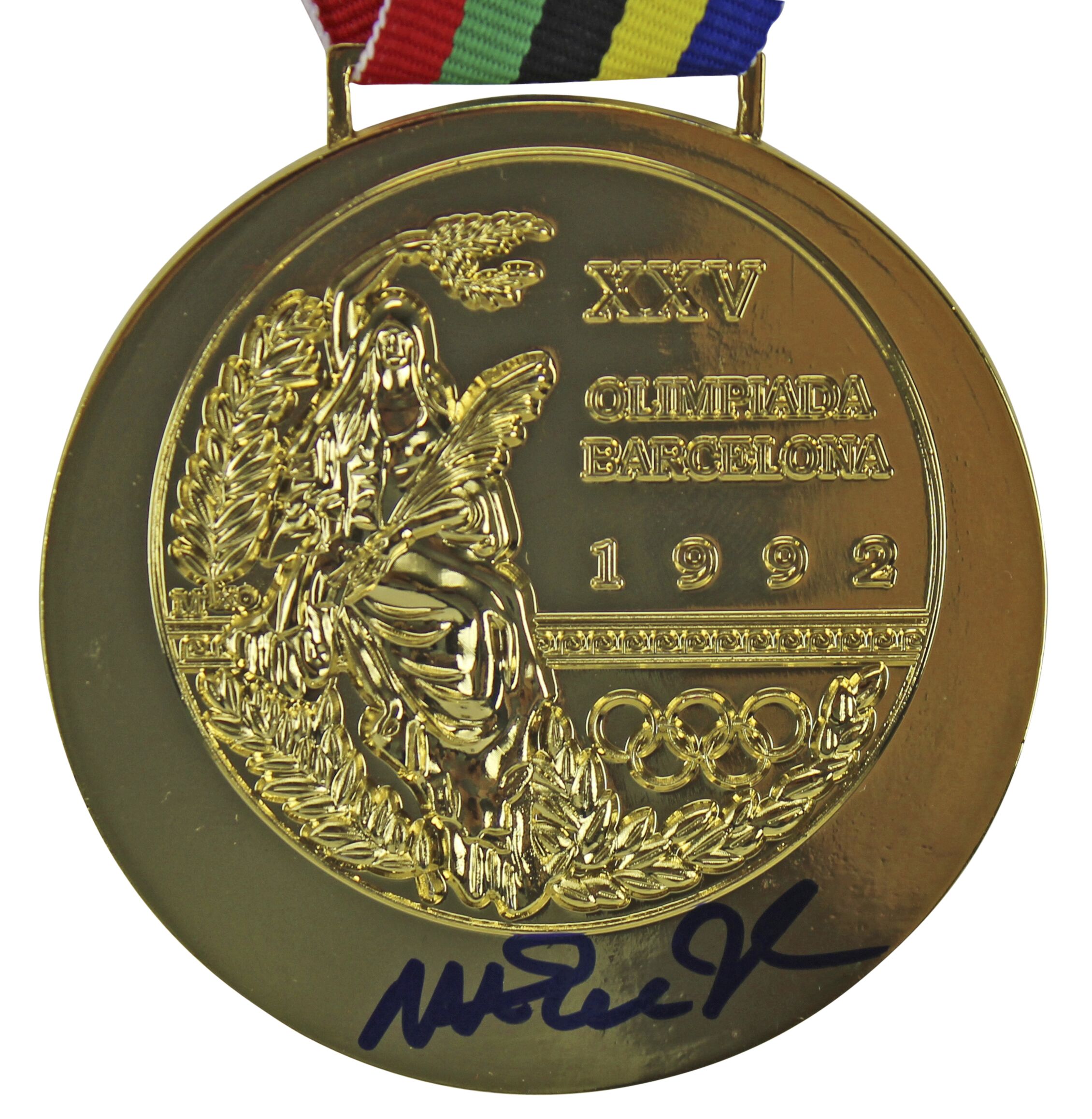 1992 Dream Team replica gold medal has been hand-signed in blue felt tip pen by Magic Johnson. (Los Angeles Lakers, HOF)