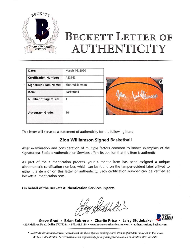 Zion Williamson Signed NBA Game Ball Series Basketball with High-Quality Display Case (Beckett LOA & Fanatics Hologram)
