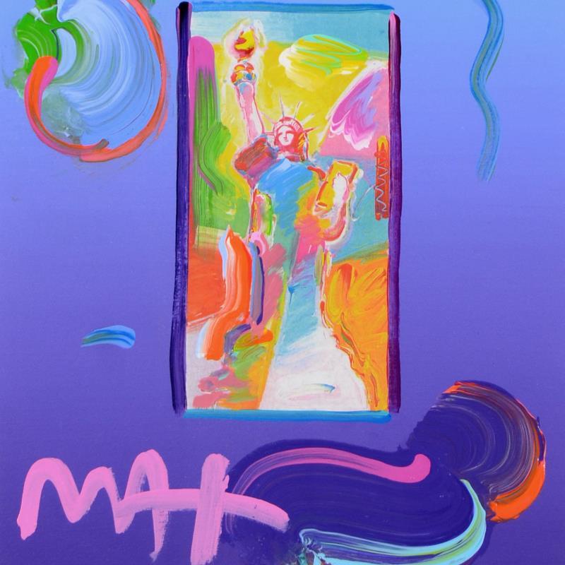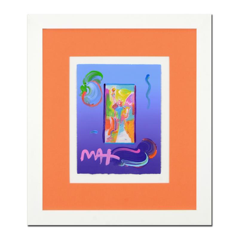 "Statue of Liberty" is a one-of-a-kind acrylic mixed media on paper, hand signed by Peter Max. This piece comes custom framed. Includes Certificate of Authenticity from Peter Max Studios. Measures approx. 18.5" x 21.5" (with frame), 8.5" x 11" (image).
