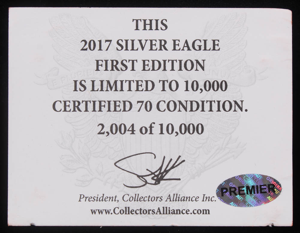 2017 American Silver Eagle $1 One Dollar Coin - First Edition Premier Label (PCGS MS70)