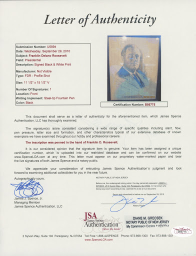 The lot / autograph(s) includes an official James Spence Authentication (JSA) hologram and matching LOA for authenticity purposes.
