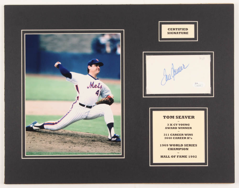 Tom Seaver Signed Mets 14x18 Custom Matted Index Card Display (JSA COA)