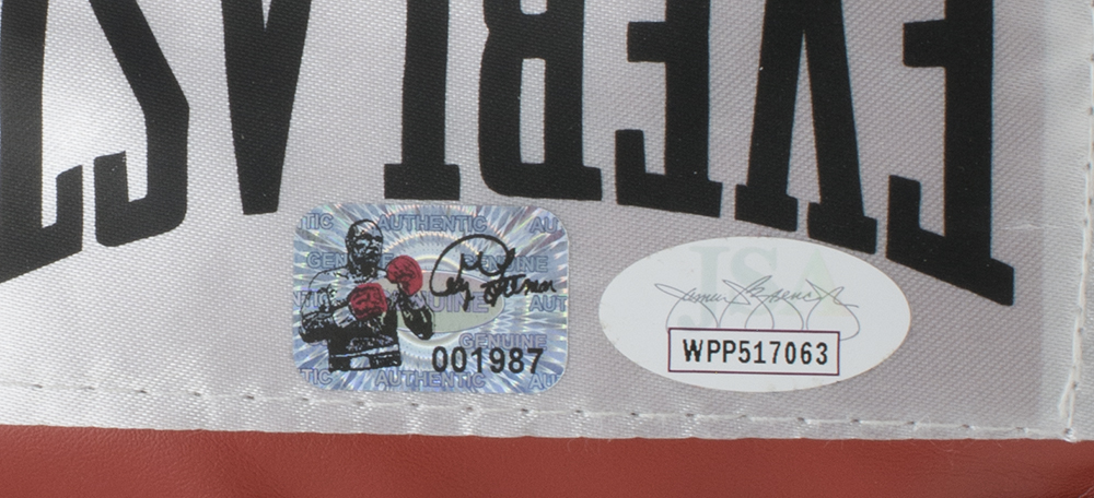 The lot / autograph(s) includes an official James Spence Authentication (JSA) hologram and matching COA as well as an official George Foreman hologram for authenticity purposes. The signing of this item was witnessed by JSA.
