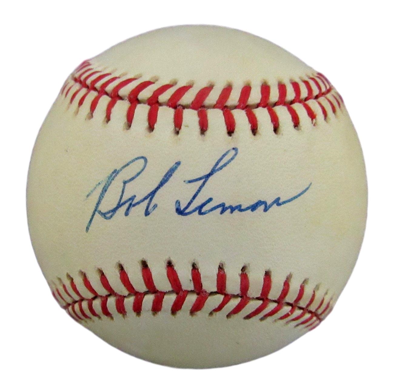Rawlings Official American League baseball. Hand-signed in blue ink pen by Bob Lemon (D. 2000, Cleveland Indians, HOF). Please note, ball shows signs of natural toning.