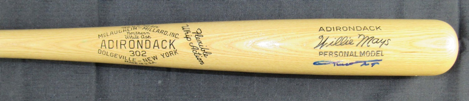 McLaughlin-Millard Big Stick Adirondack player model baseball bat. Hand-signed in blue felt-tip pen by Willie Mays (San Francisco Giants, HOF).