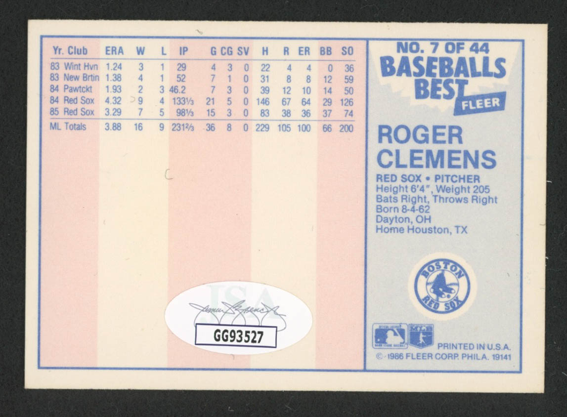 Roger Clemens Signed 1986 Fleer Sluggers/Pitchers #7 Baseball Card (JSA COA)