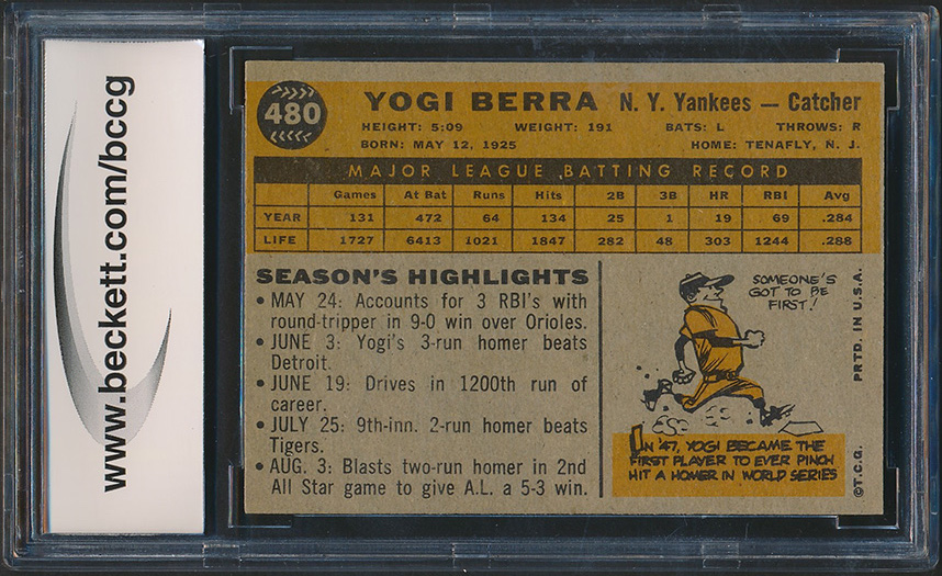 Yogi Berra 1960 Topps #480 (BCCG 9)