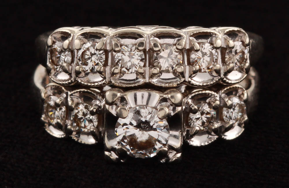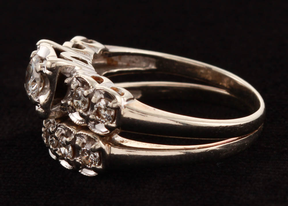 Vintage 14Kt White Gold & Diamond Bridal Set
