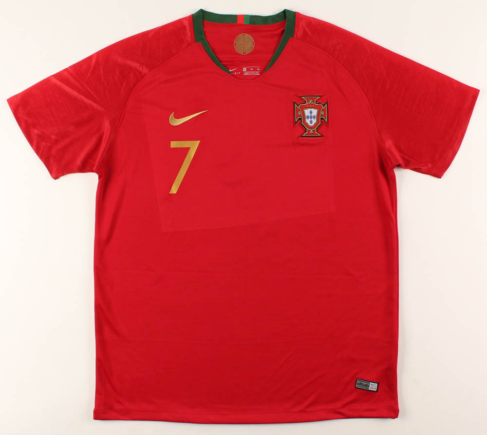 Nike on-field style jersey. Everything is printed on, size XL. Has been hand-signed in black felt-tip pen by Cristiano Ronaldo.