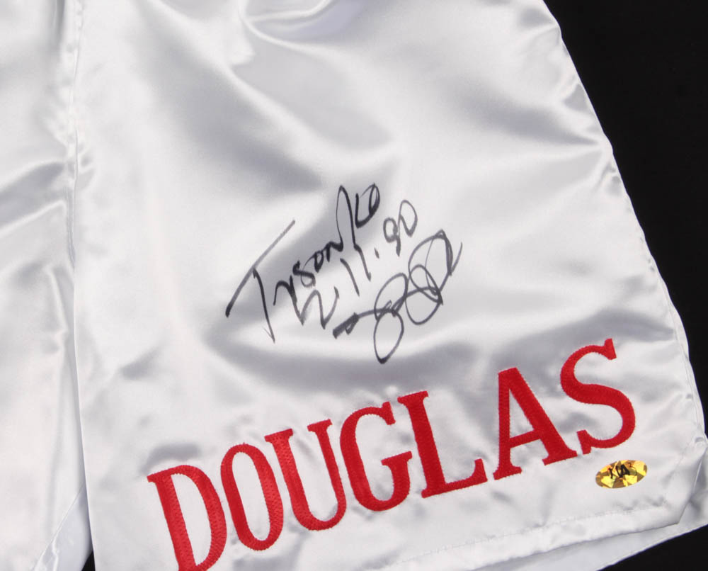 James "Buster" Douglas Signed Boxing Trunks Inscribed "Tyson KO 2-11-90" (MAB Hologram)