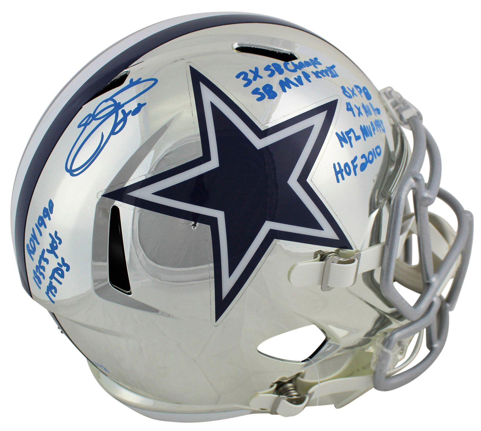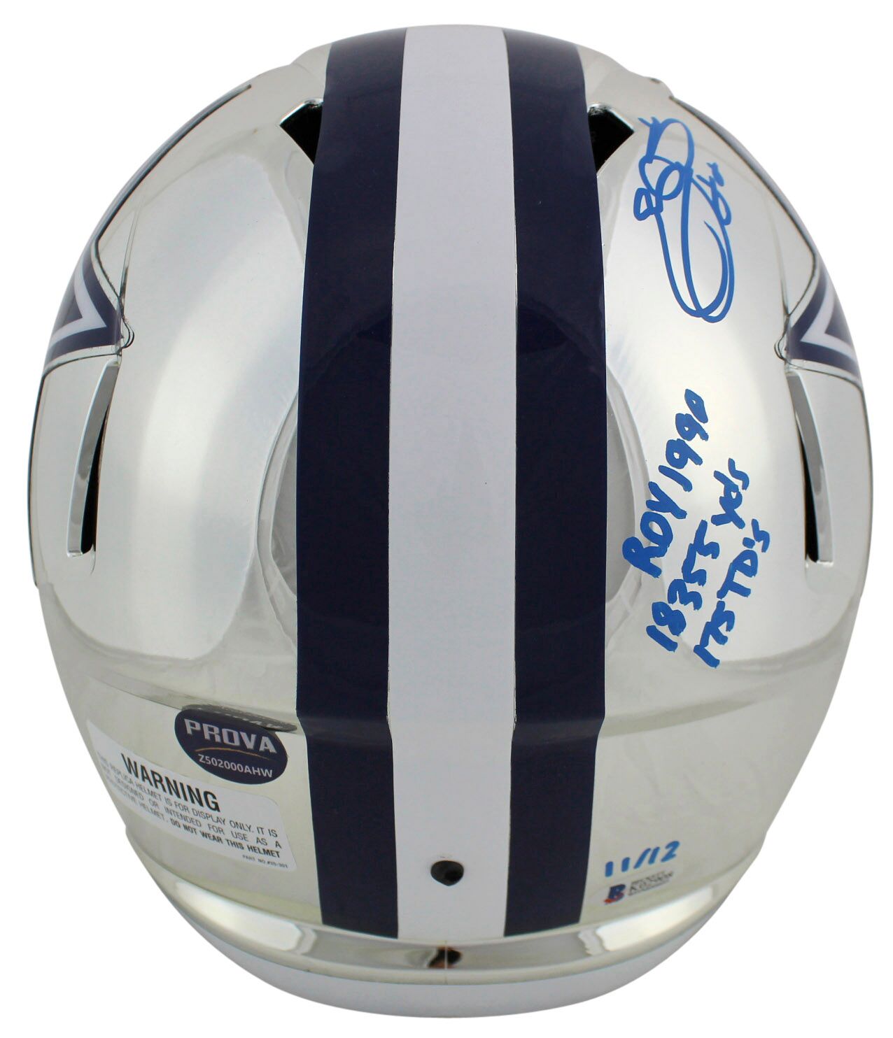 Emmitt Smith Signed LE Dallas Cowboys Full-Size Chrome Speed Helmet with Multiple Career Stat Inscriptions (Beckett COA & Prova Hologram)