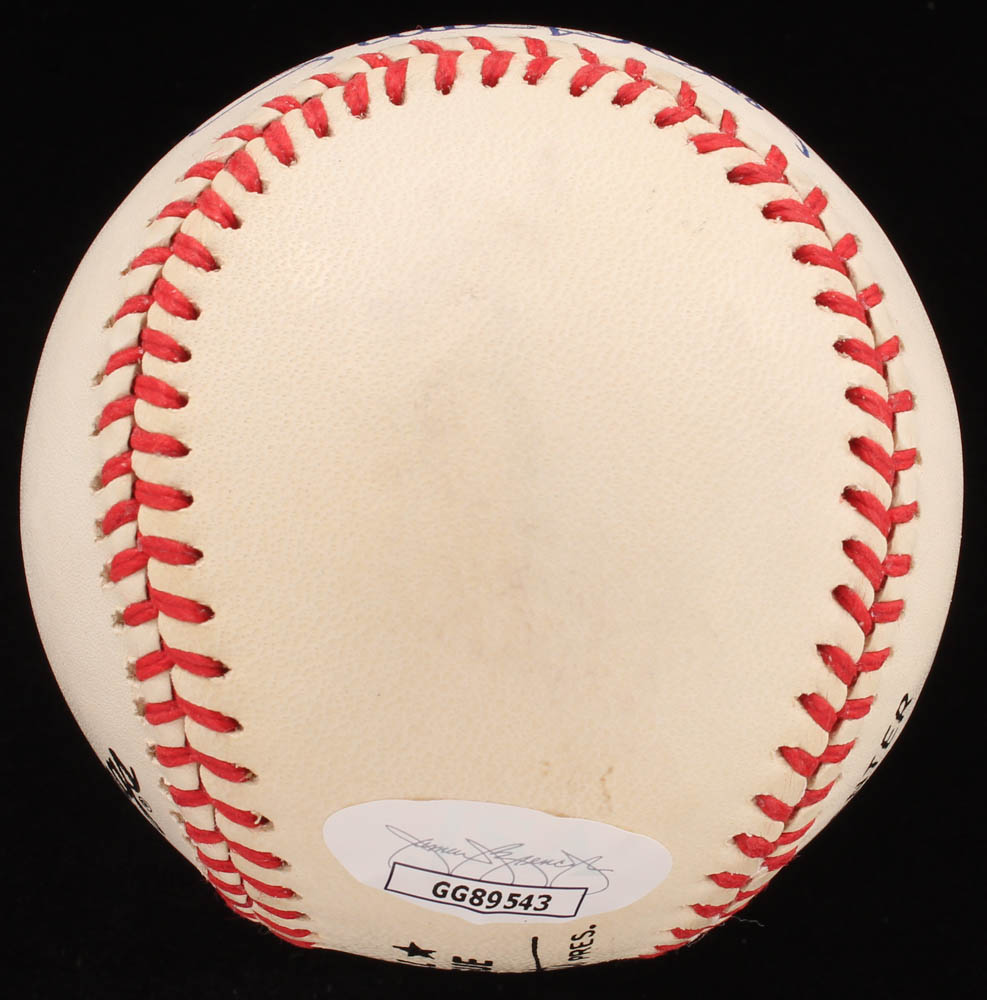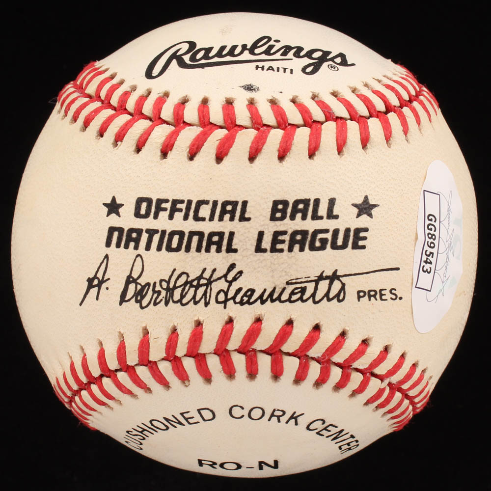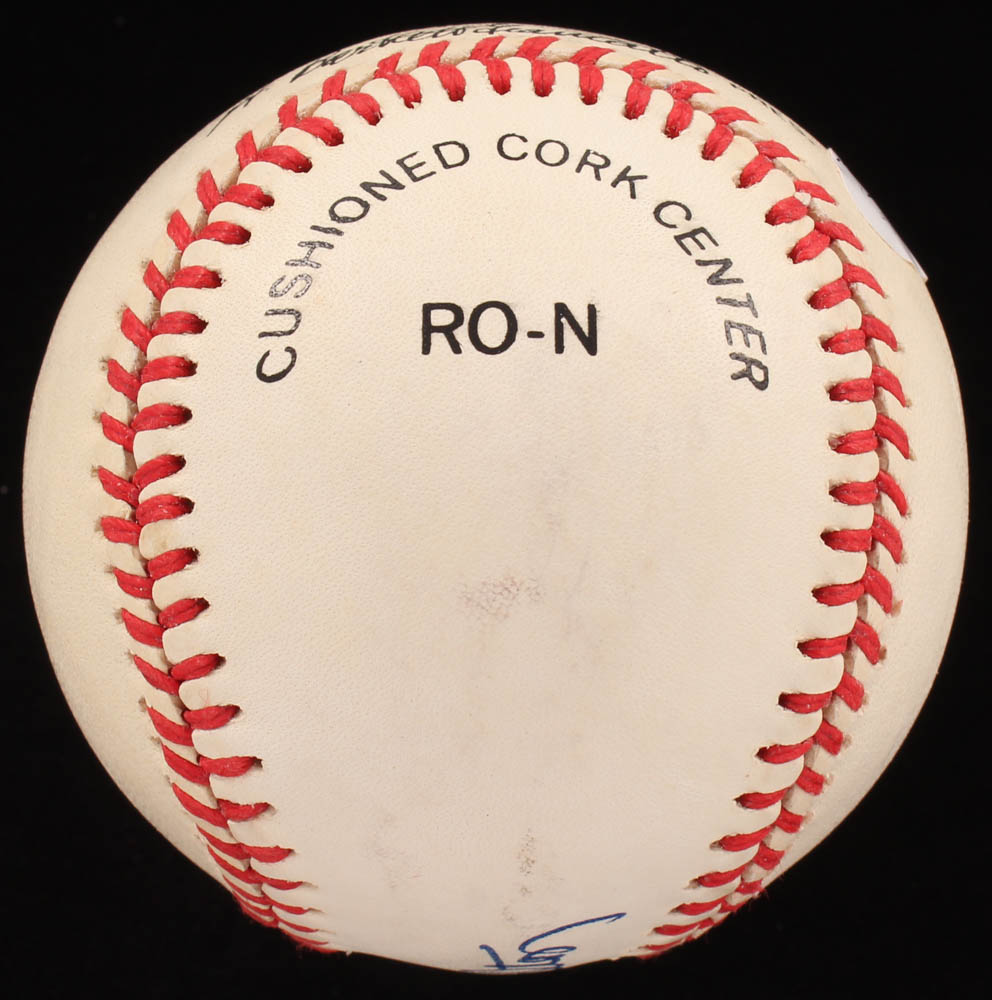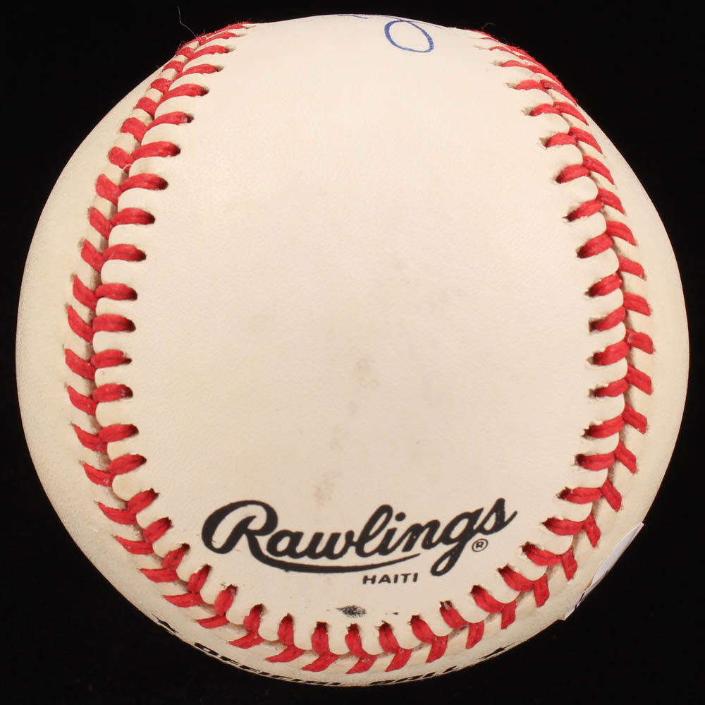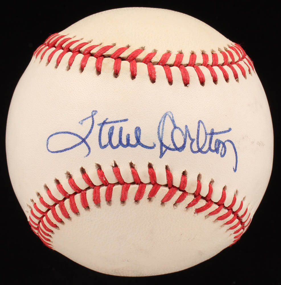 Rawlings Official National League Baseball. Hand-signed in blue ink pen by Steve Carlton (Philadelphia Phillies, HOF). Please note, baseball shows signs of natural toning.
