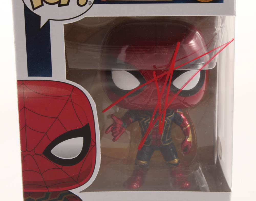 Funko Pop! vinyl figure measures approximately 4" tall and is hand-signed in red paint pen on the box by Tom Holland.
