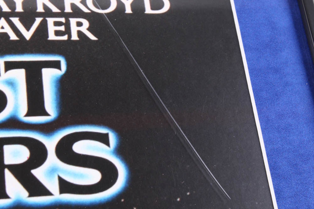 Custom frame measures 17.5" x 30.5" in size and features a movie poster from the film "Ghostbusters" (1984). Please note, frame shows signs of minor handling.