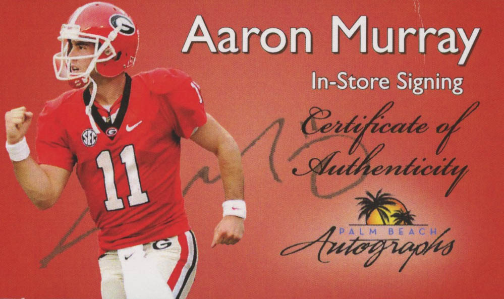 Photo measures 8" x 10" in size and has been hand-signed in black felt-tip pen by Aaron Murray.