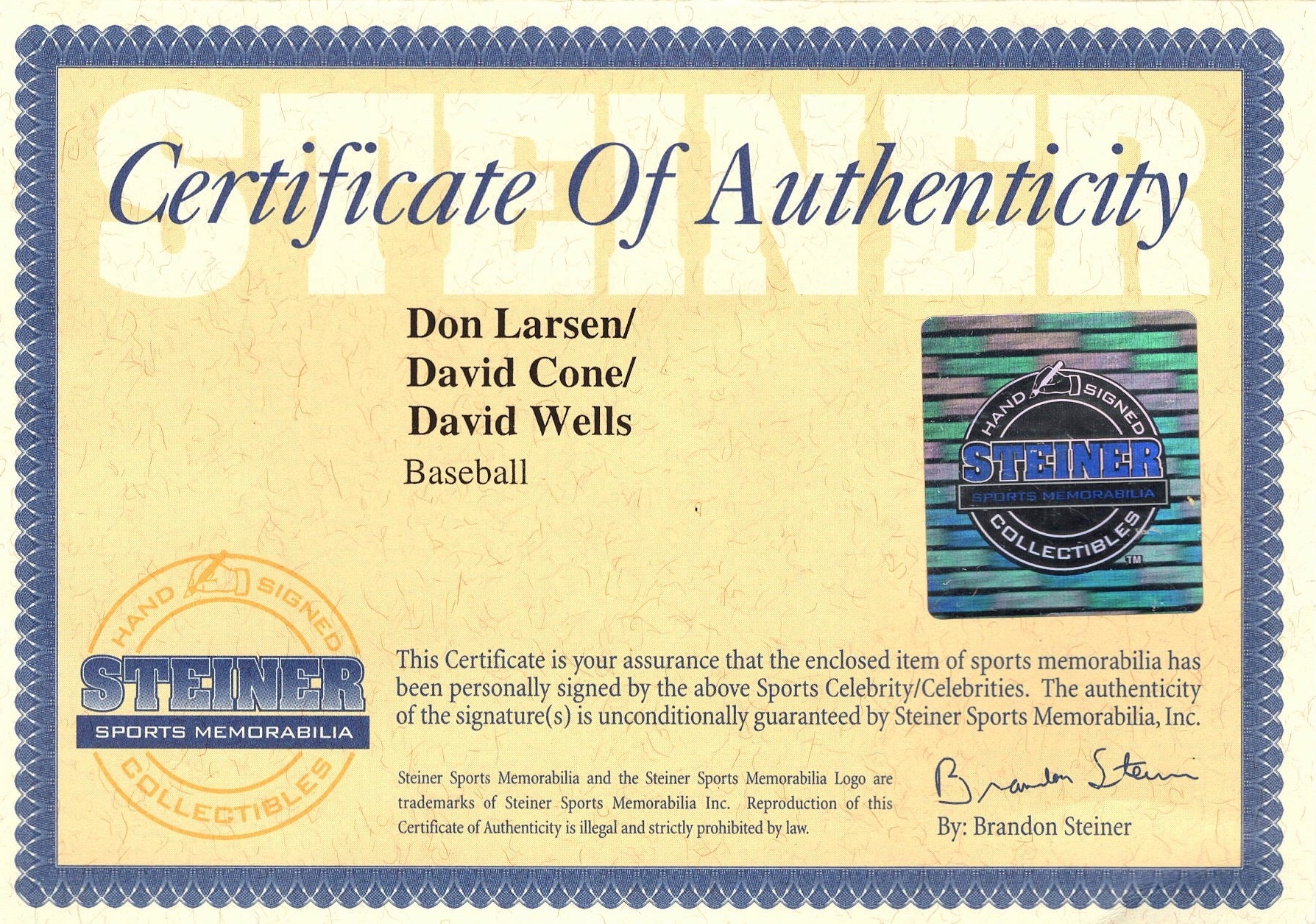 The lot / autograph(s) includes an official Steiner Sports hologram and matching COA for authenticity purposes.