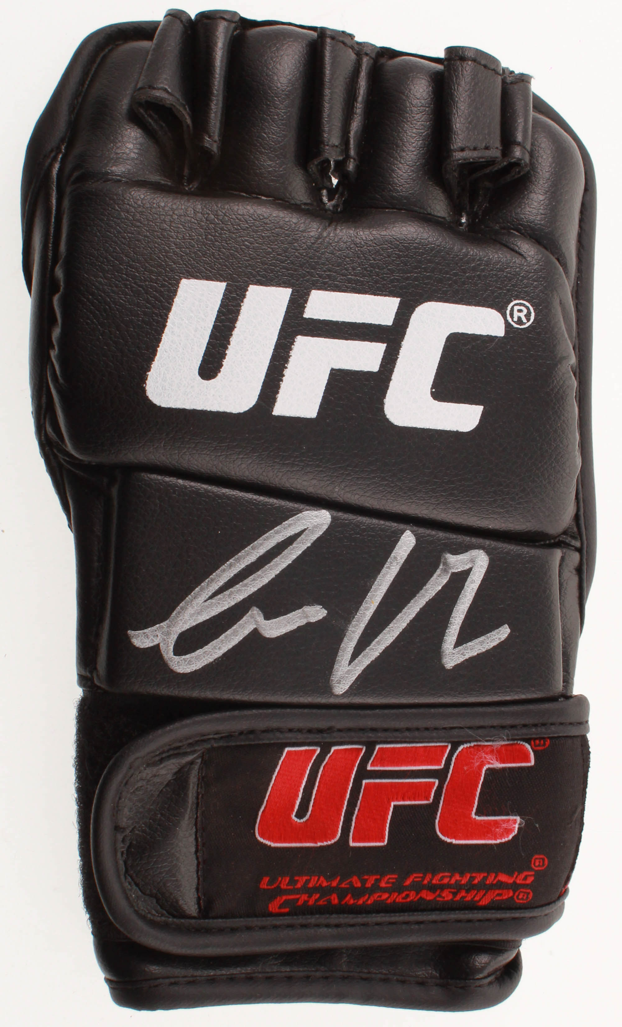 Official UFC fight glove, size L. Hand-signed in silver paint pen by Conor McGregor.