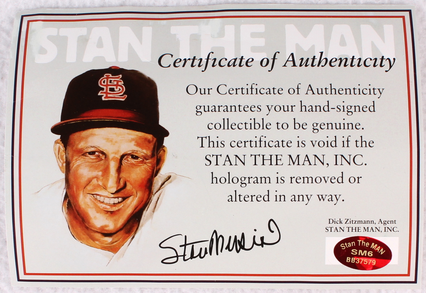 Full-size Louisville Slugger genuine baseball. Hand-signed in black felt-tip pen by Stan Musial (D 2013, Cardinals HOF). Limited Edition # 1296/3630. The autograph includes an official Stan the Man player hologram with matching COA for authenticity purposes.