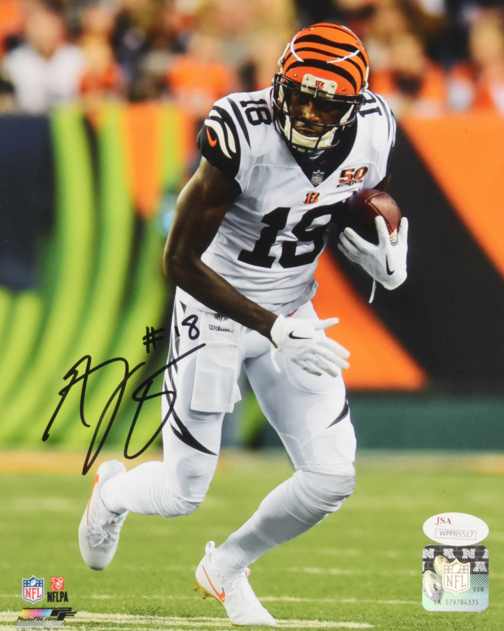 Photo measures 8" x 10" in size and has been hand-signed in black felt-tip pen by A.J. Green (Cincinnati Bengals).