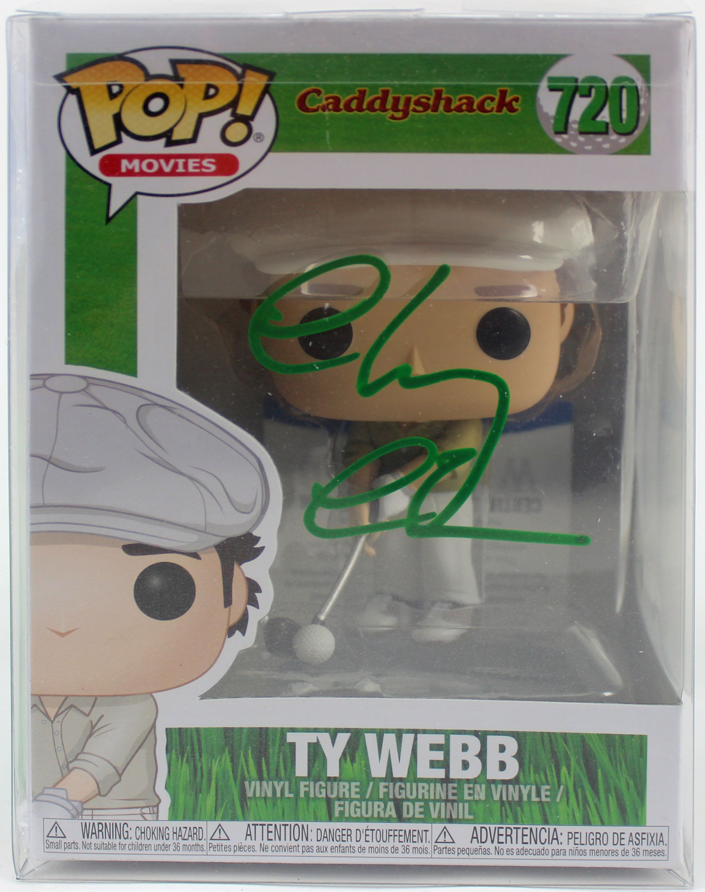 Funko Pop figure measures approximately 4" tall and has been hand-signed in green paint pen on the packaging by Chevy Chase (Ty Webb). Please see photos for details regarding condition.