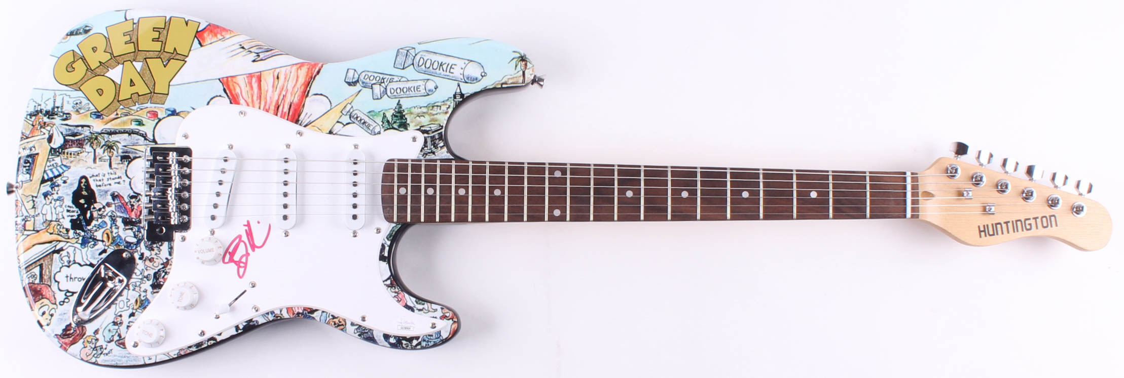 Huntington 39" electric guitar has been hand-signed on the pick guard in red felt-tip pen by Billie Joe Armstrong.