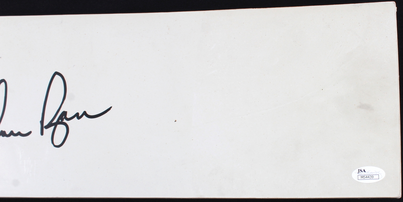 Full-size authentic pitching rubber (24" x 6") made by Schutt Sports. Hand-signed in black felt tip pen by Nolan Ryan (Rangers HOF). The autograph includes an official James Spence Authentication (JSA) hologram and matching COA for authenticity purposes.