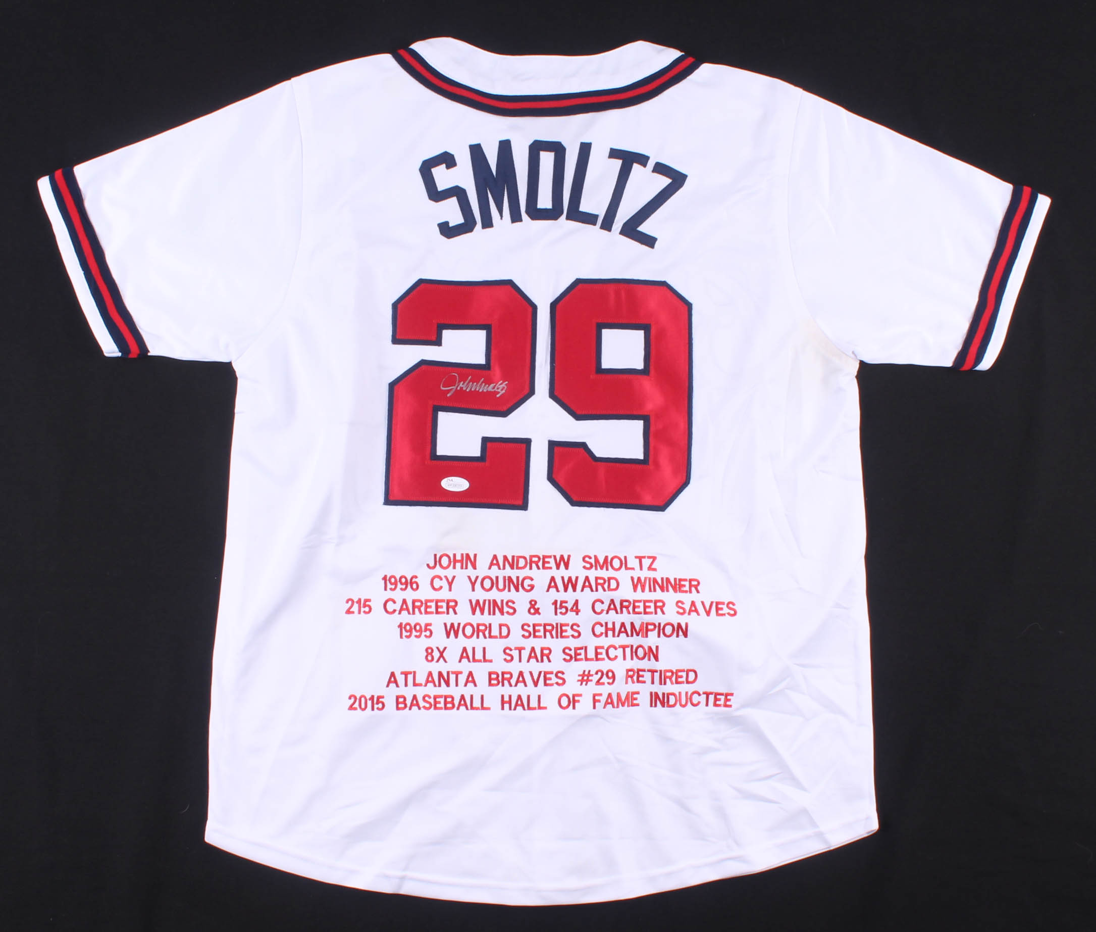 John Smoltz Signed Career Highlight Stat Jersey (JSA COA)