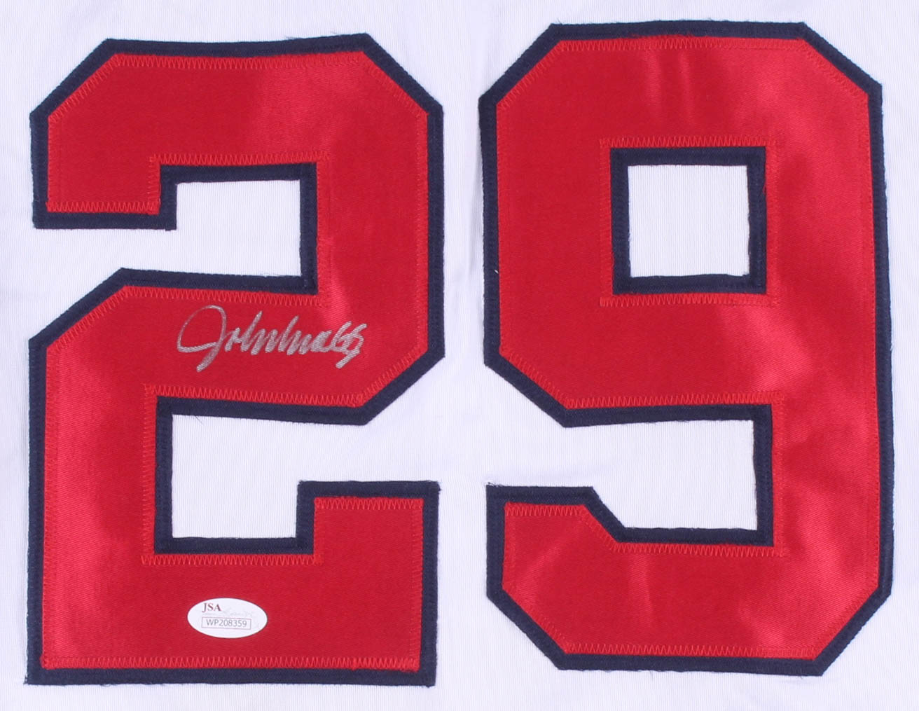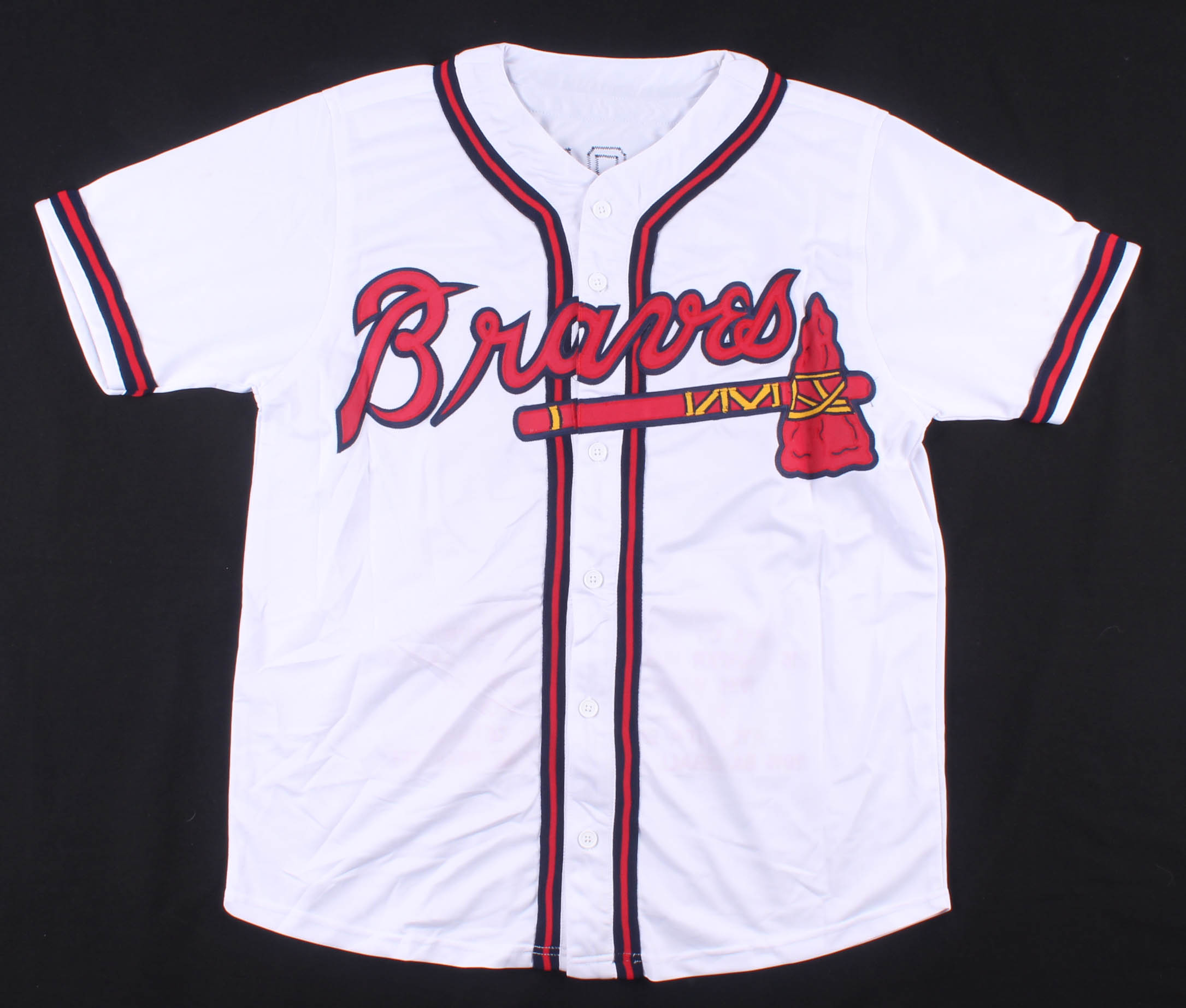 Custom on-field style jersey. Everything sewn on, size XL. Hand-signed in silver paint pen by John Smoltz (HOF). Please see images for details regarding the condition of the jersey.