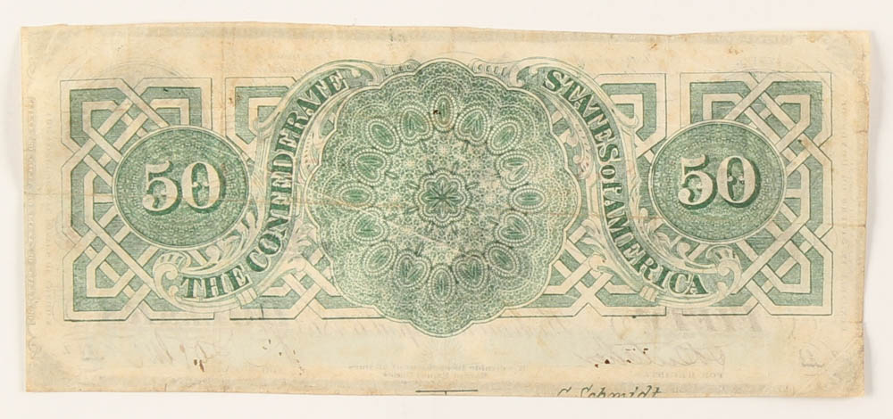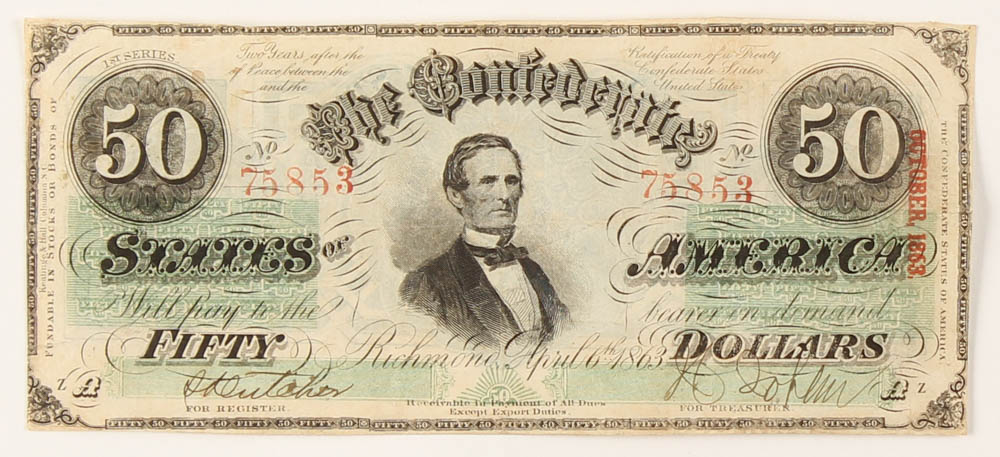 1863 $50 Fifty-Dollar Confederate States of America Richmond CSA Bank Note