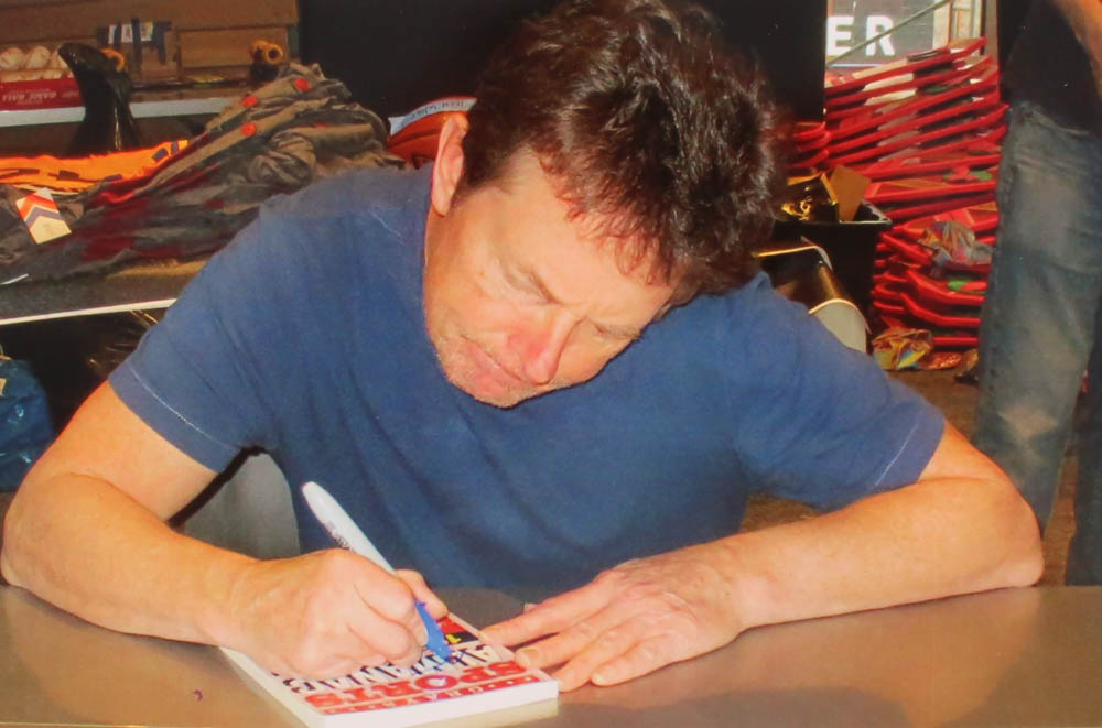 "Grays Sports Almanac: 1950-2000" Paperback Book. Has been hand-signed in blue felt-tip pen on the cover by Michael J. Fox (Marty McFly) and Christopher Lloyd (Dr. Emmett Brown).