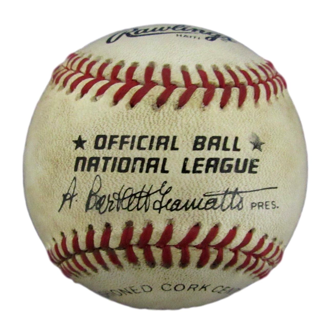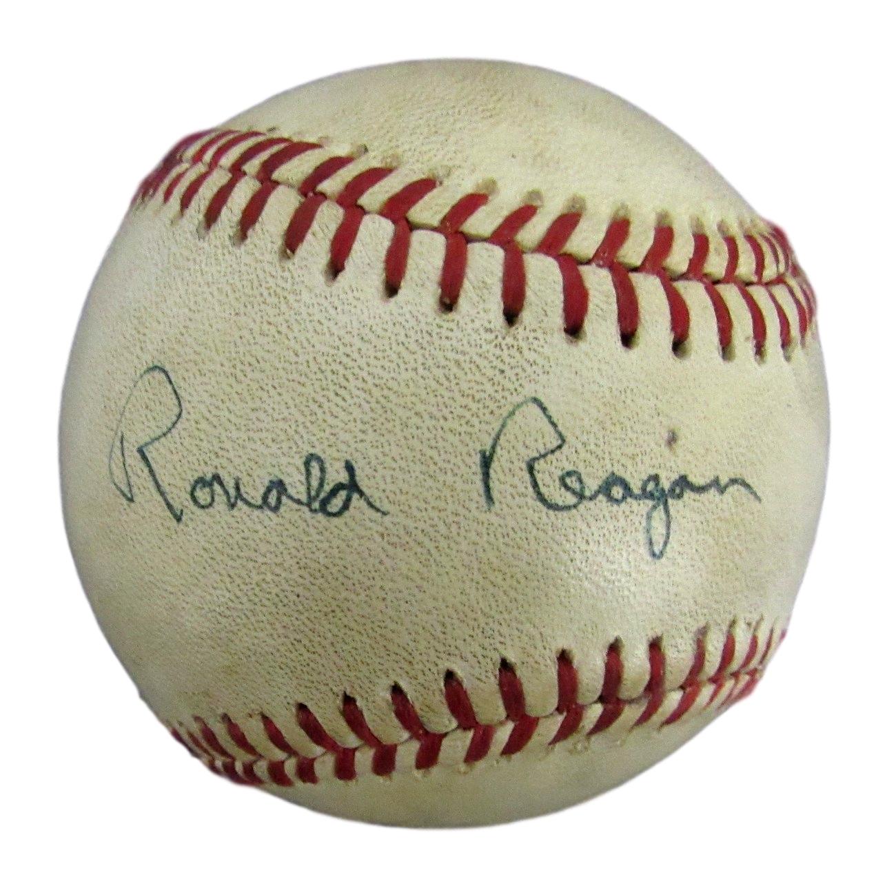 Rawlings Official National League baseball. Hand-signed in black ink pen by Ronald Reagan (D. 2004).