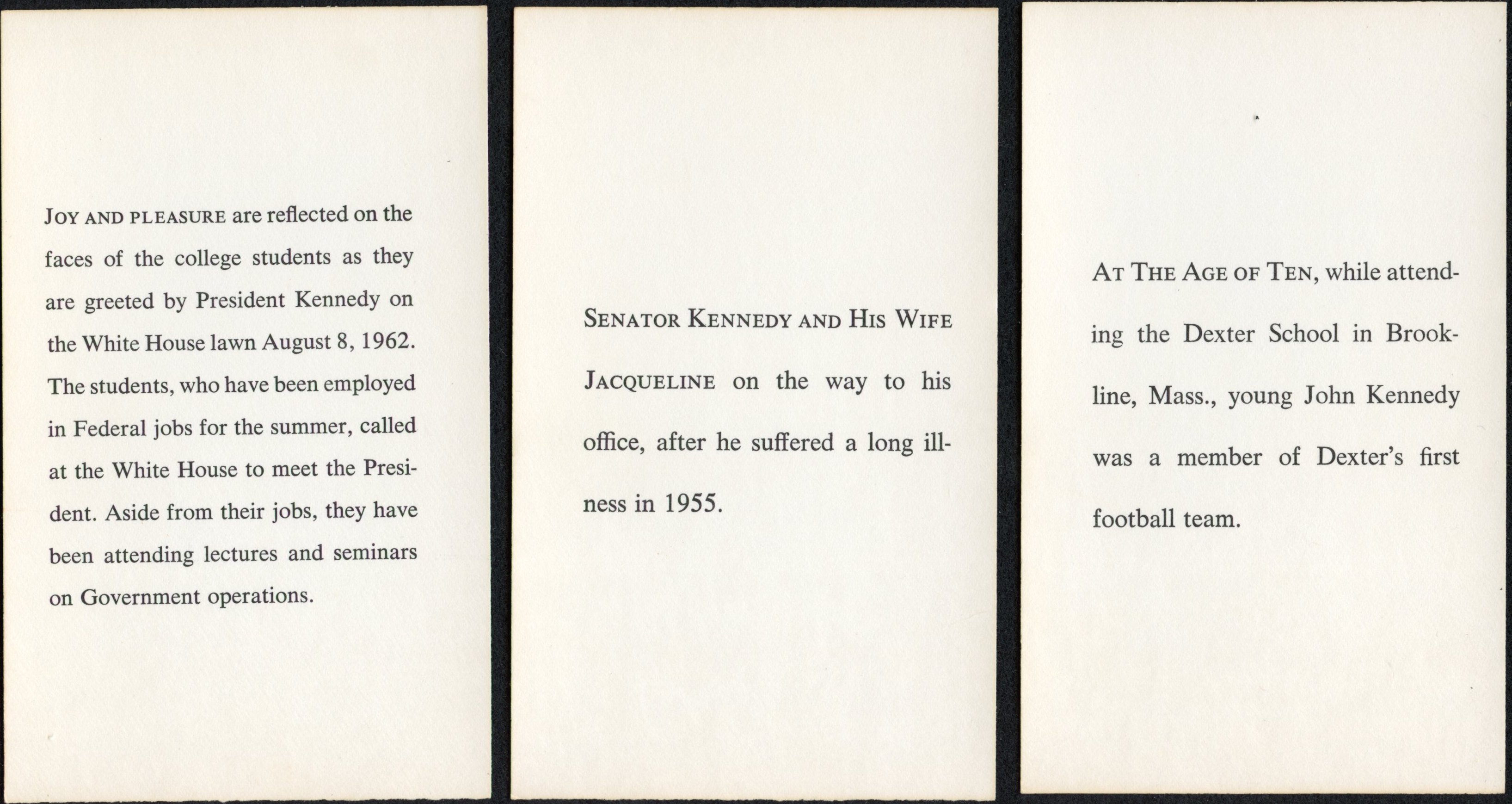 1961 John F. Kennedy Complete Set of (42) Cards with Meeting JFK Card, Dexter Football Card & JFK & Jackie Kennedy On The Way To Office Card